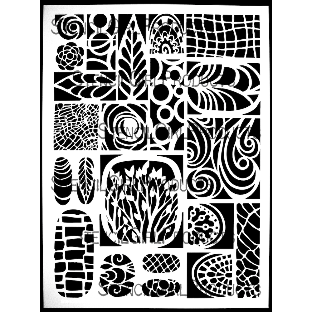 Bring dynamic layers and artistic flair to your projects with the StencilGirl Sjodin-Shaw Mashup Reimagined Stencil. This 9 x 12 inch sectioned stencil reimagines a beloved StencilClub design by Mary Beth Shaw and Valerie Sjodin, offering expanded creative possibilities. Use it whole for bold backgrounds, spotlight individual sections for tags and cards, or enhance it with washi tape, pencils, pens, and more in your mixed media art.