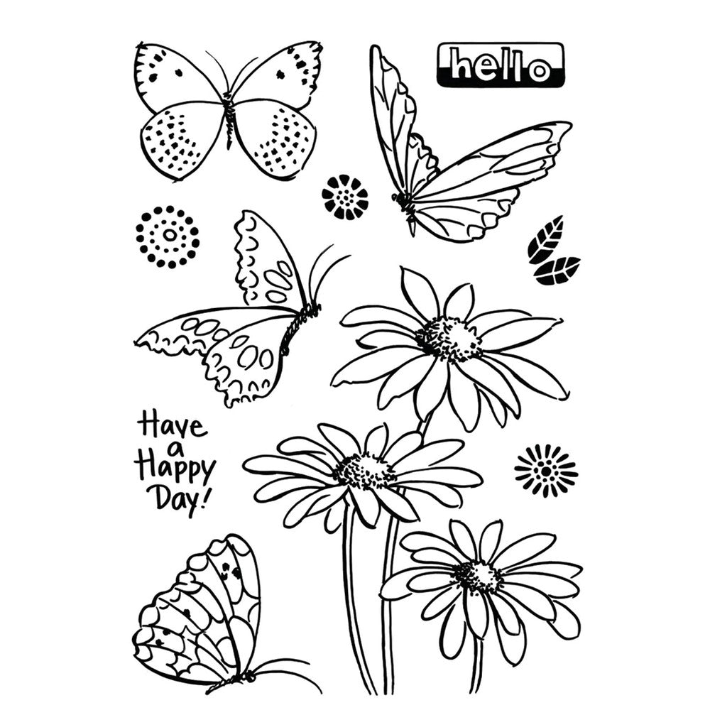 Thank you for sharing information about the Hello Butterfly Clear Stamp Set from the Stampendous Spring Collection! This set includes 11 clear stamps that can be used with an acrylic block and are made in the USA.