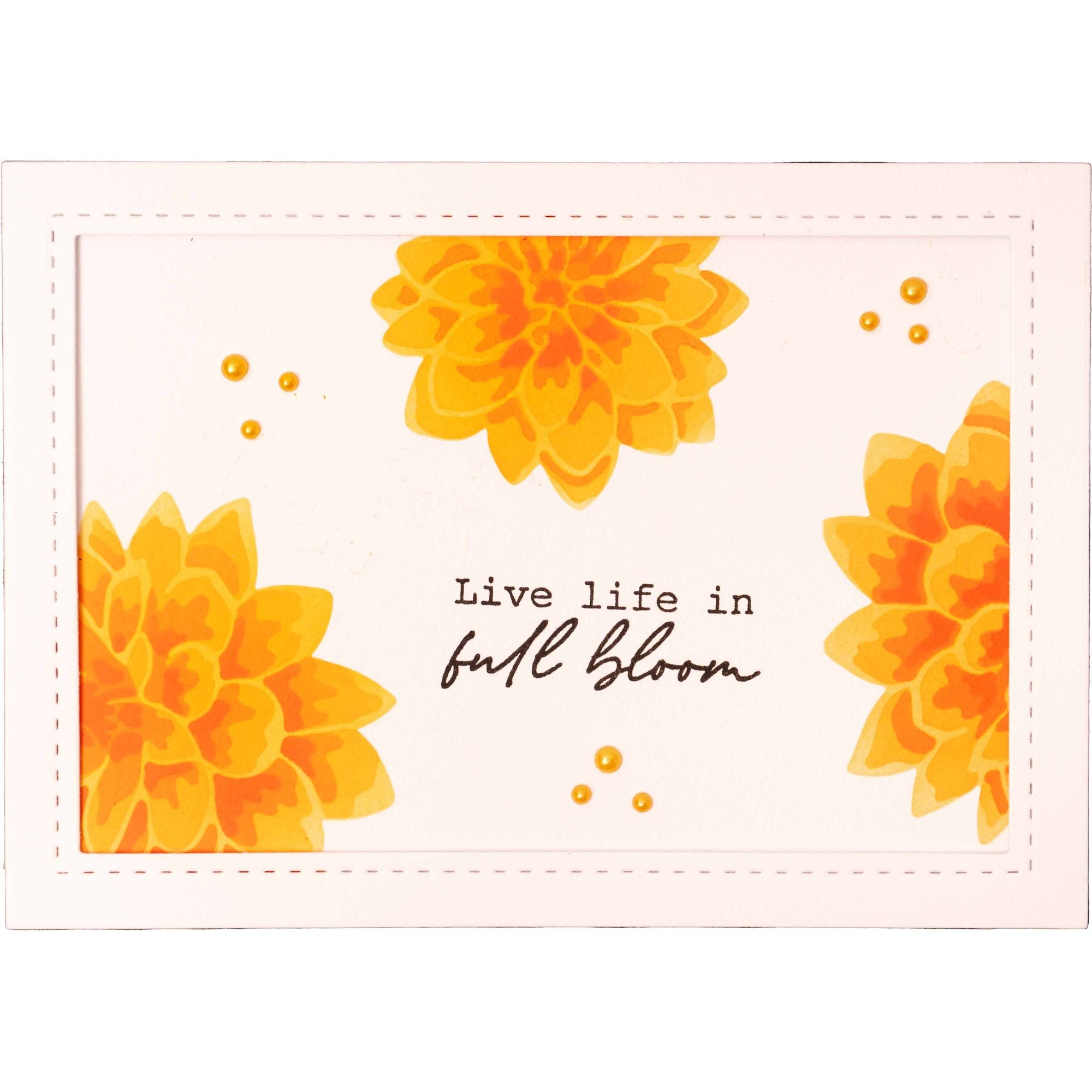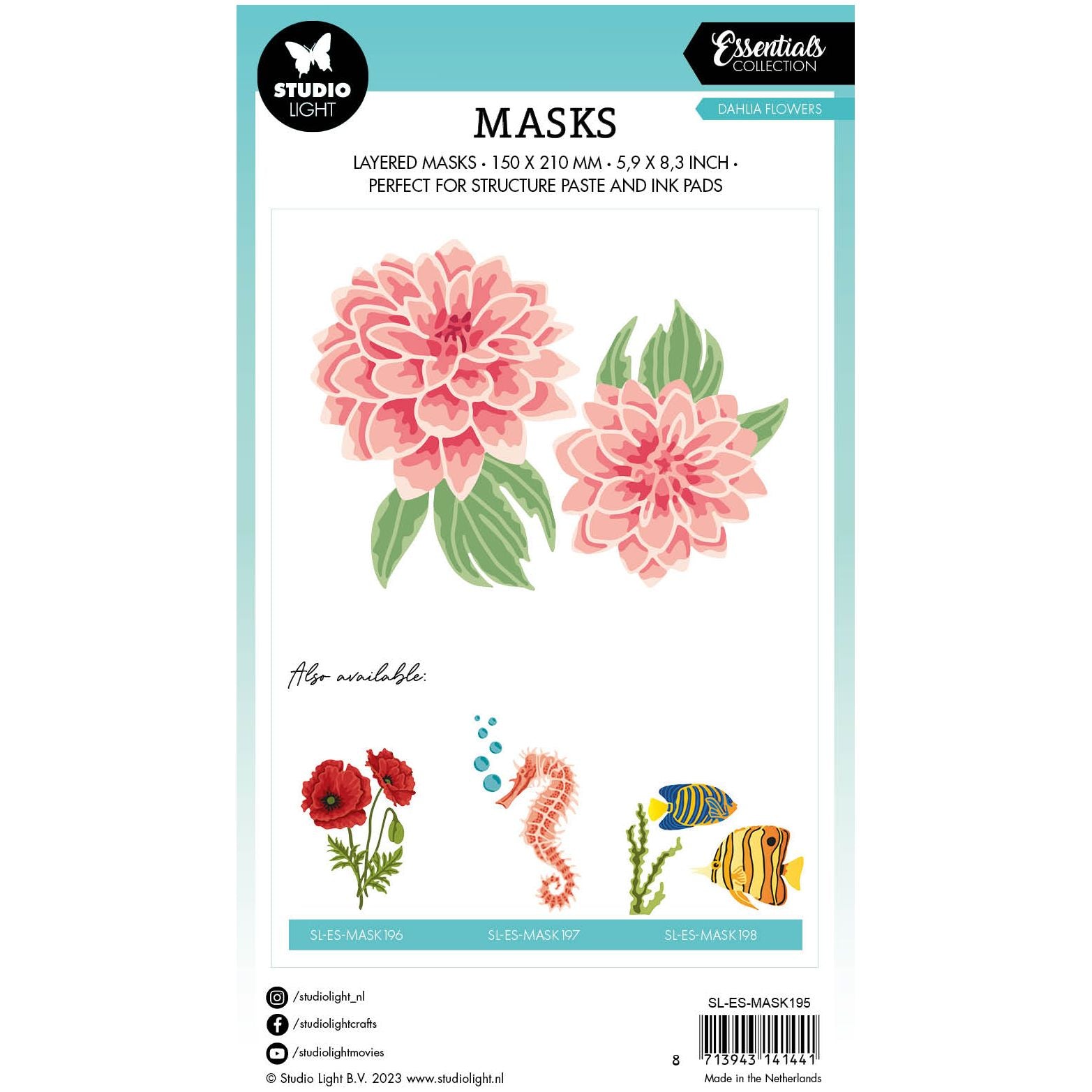 The Studio Light Dahlia Flowers Stencil measures approximately 5.9 x 8.3 inches. This versatile stencil features two distinct blooms that can be effortlessly layered in various hues, allowing you to enhance depth and texture and create stunning, fully-formed flowers. Accompanied by delicate leaves and a captivating center, this stencil is ideal for utilizing paste and ink techniques to achieve exquisite results.
