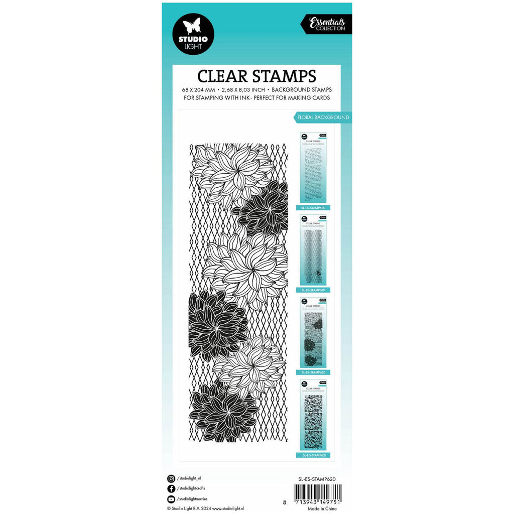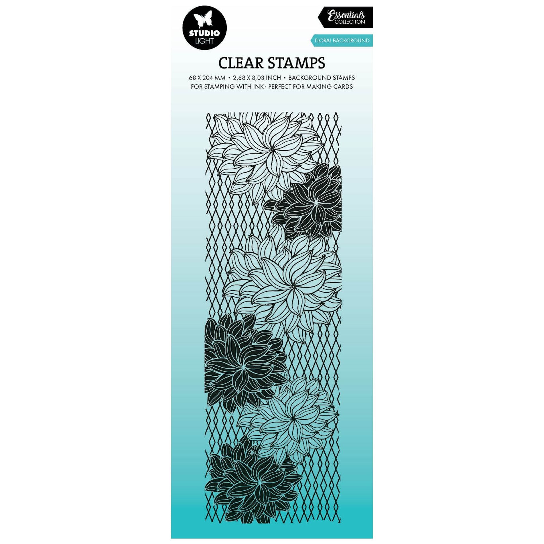 The Studio Light Floral Background Clear Stamps are part of the Essentials Collection. This set showcases a captivating netting background design adorned with solid and open blooms, perfect for adding depth and elegance to your projects. Crafted from clear polymer, these stamps ensure precise and detailed impressions. With dimensions of 8.5 x 4 inches, this set includes 1 piece, offering versatility and endless creative possibilities for your crafting endeavors.