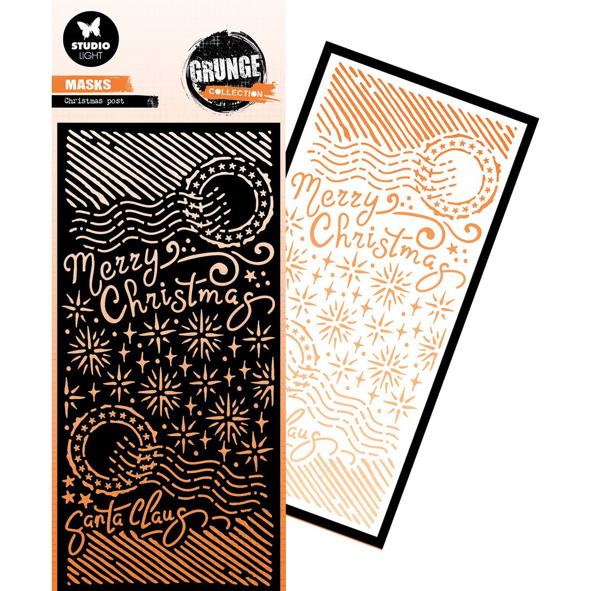 Studio Light Mask Christmas Post Mask is part of the Grunge Collection and brings a festive, distressed flair to your holiday crafting. This 3.9 x 5.9-inch stencil features a collage-style design with snowflakes, postage marks and wavy lines, stars, and the words "Santa Claus" and "Merry Christmas." Ideal for use with inks, paints, pastes, and more, it’s perfect for creating layered backgrounds on Christmas cards, journals, mixed-media projects, and seasonal décor.