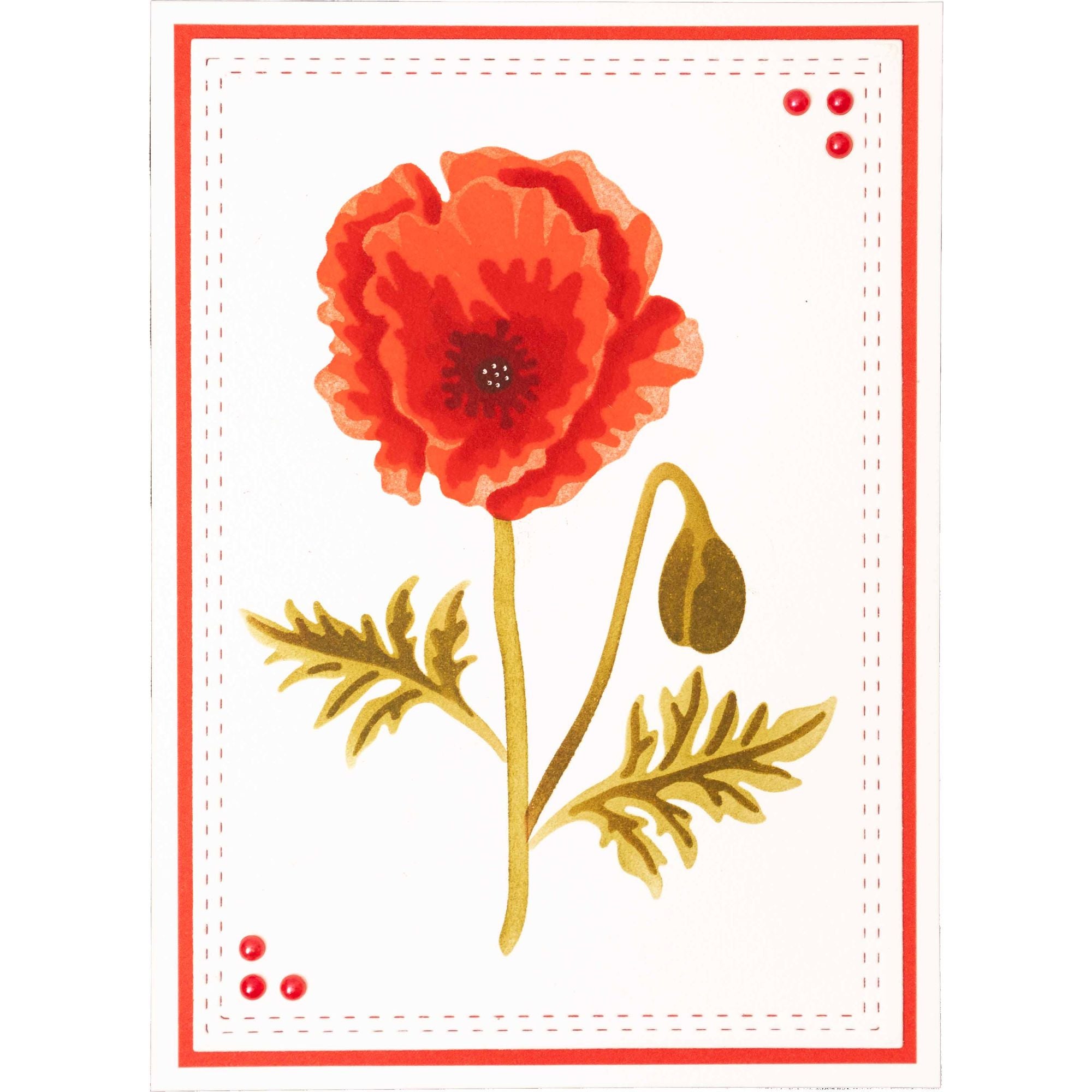 The Studio Light Poppy Flowers Stencil is designed with precision and creativity. With dimensions of approximately 5.9 x 8.3 inches, this stencil is the perfect canvas for paste and ink applications. It offers a range of layering designs, allowing you to effortlessly create two beautiful poppies complete with elegant stems and graceful leaves. Simply layer the petals, leaf veins, stems, and buds to bring these vibrant flowers to life with ease and artistic finesse.