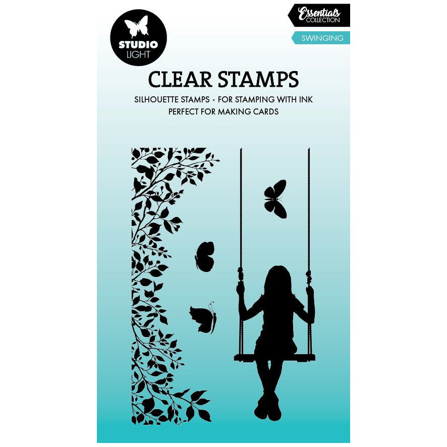Studio Light Swinging Essentials Clear Stamps is a charming set perfect for adding playful detail to your projects. This 2.4 x 3.7-inch clear polymer stamp set includes 5 pieces, featuring a child on a swing, three butterflies, and a vine element. Use these versatile designs to adorn your artwork or create unique backgrounds, focal points, and more.