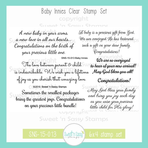 -Stamp set includes 7 Sentiments -Stamp set measures approximately 4 x 6 inches -The longest sentiment measures approximately 3.5 x 1.125 inches -Designed by Korin Sutherland
