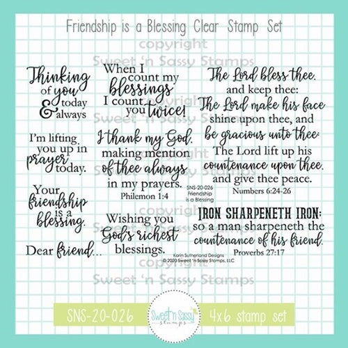 Sentiments include: Thinking of you today & always, I'm lifting you up in prayer today.; Your friendship is a blessing.; Dear friend...; and When I count my blessings I count you twice!