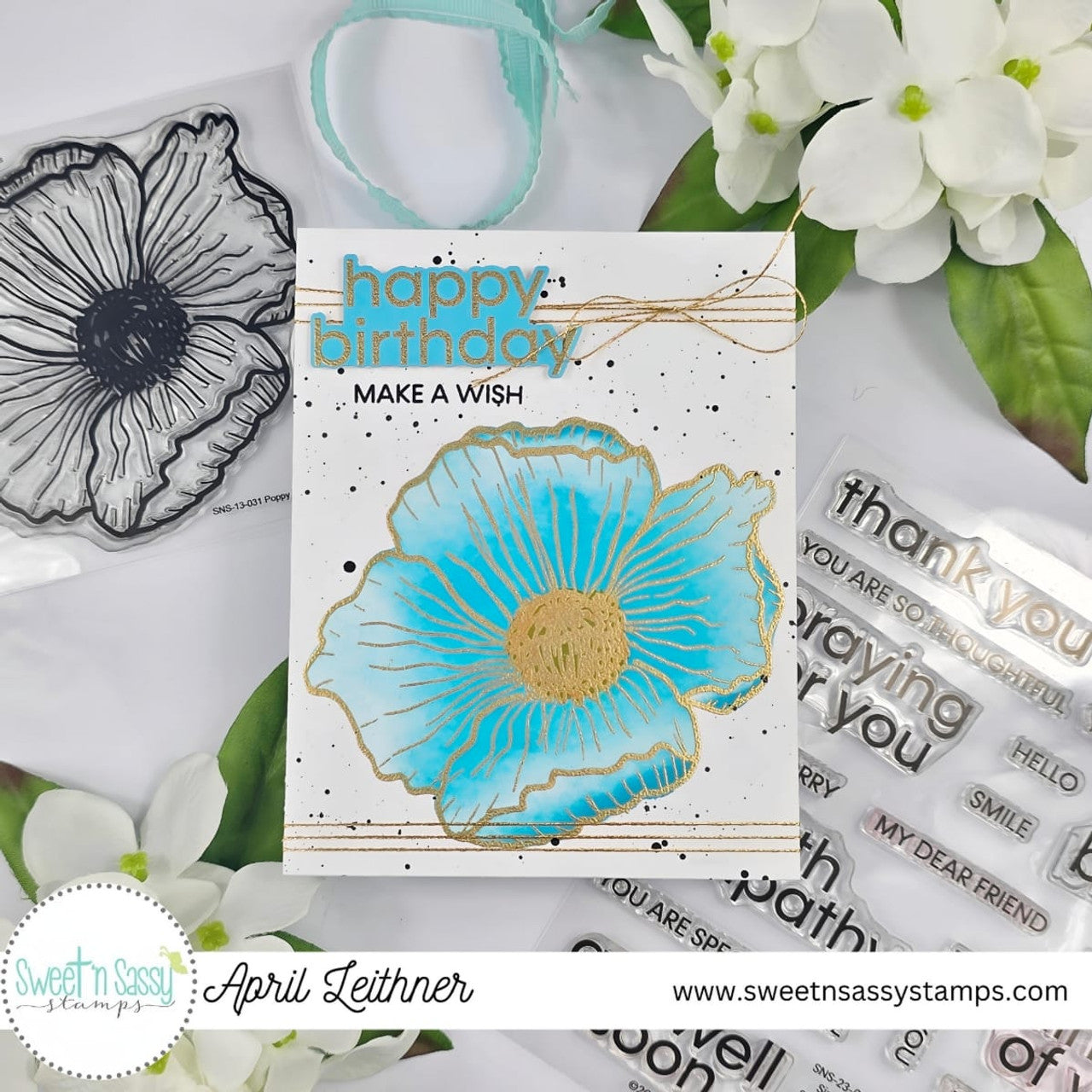 This stamp set features a single, large image measuring 3.75 x 3.75 inches, designed by Korin Sutherland and proudly made in the USA.