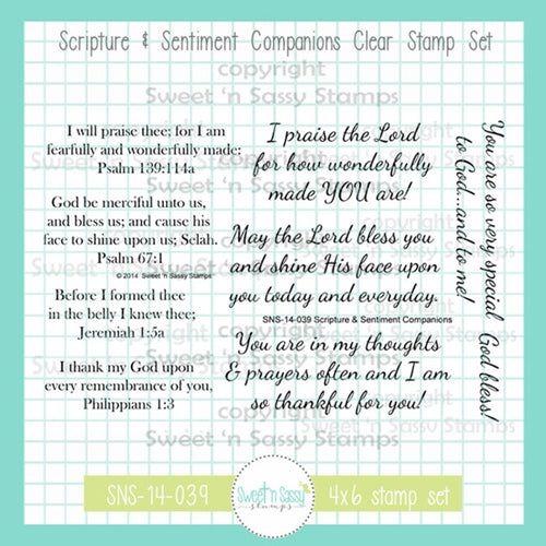 -Clear stamp set includes 9 sentiments and scripture that coordinate together -Designed by Korin Sutherland
