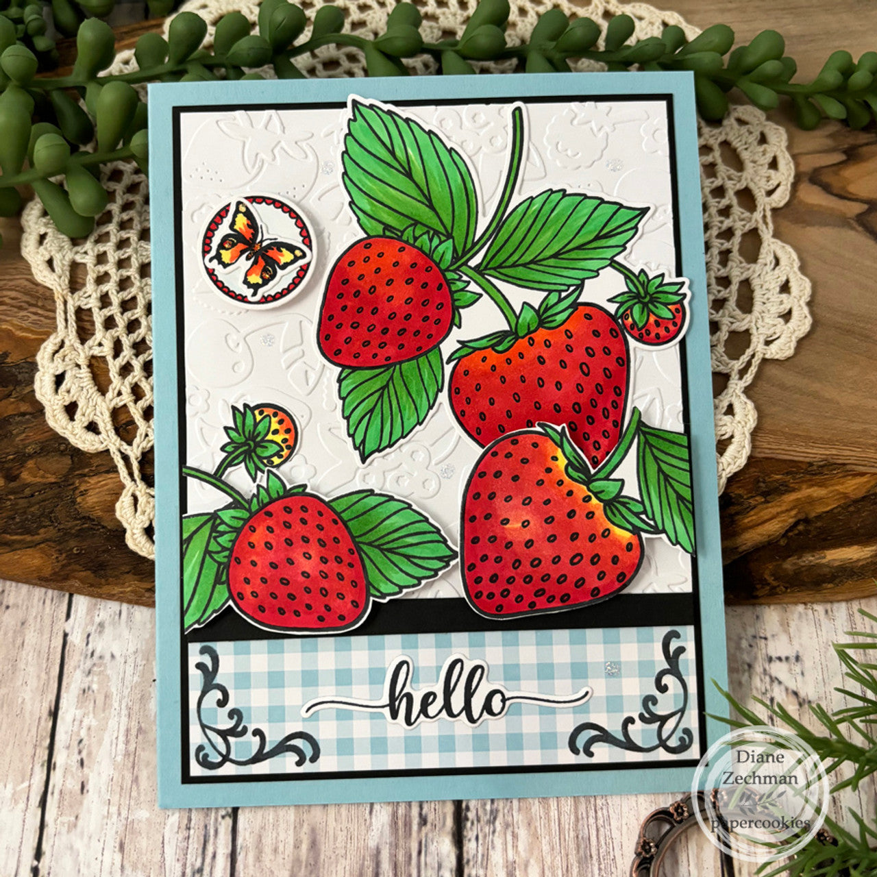 This set includes 18 clear stamps designed by Jennifer Nilsson and features imagery such as strawberries, flourishes, butterflies, a circle, and an oval. All stamps are made in the USA and can be paired with the coordinating dies (cwsd-266).