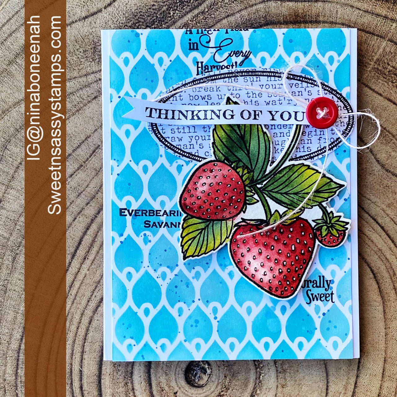 This set coordinates with the Vintage Strawberry Seed Packet Stamp Set (cws-24-016, sold separately) and includes 6 metal dies designed by Jennifer Nilsson. The artwork features strawberries, a butterfly, a circle, and an oval, all made in the USA.