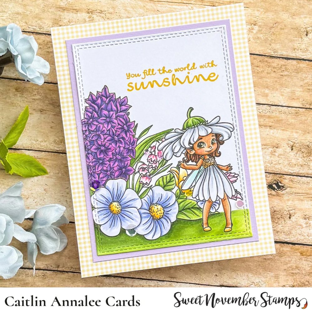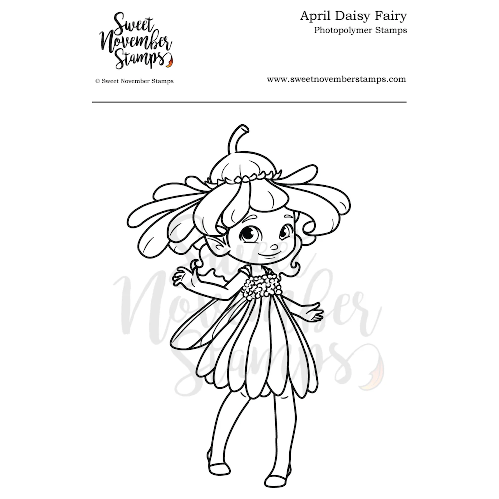 Introducing the Sweet November Stamps April Daisy Clear Stamp Set, a delightful addition to your crafting collection. Measuring 2 x 3 inches, this photopolymer stamp set is part of a captivating series highlighting the Birthflower fairies. For the month of April, we proudly present the Daisy fairy, celebrating the charm and beauty of this beloved flower.