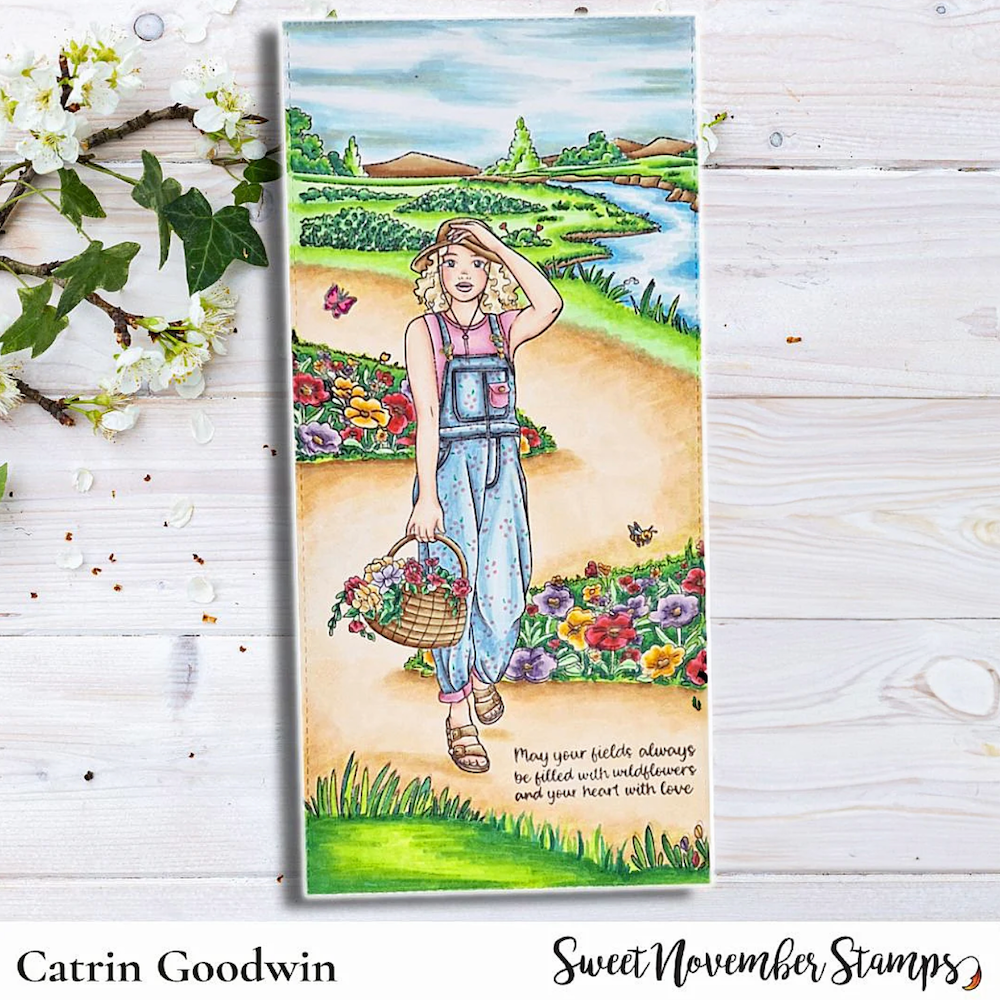 Introducing the Sweet November Stamps Sorrel Gal Clear Stamp Set, a must-have addition to your Spring collection! This 2 x 6 inch clear stamp set showcases a savvy gardener standing tall at 5.3 inches, offering endless possibilities for your crafting projects.