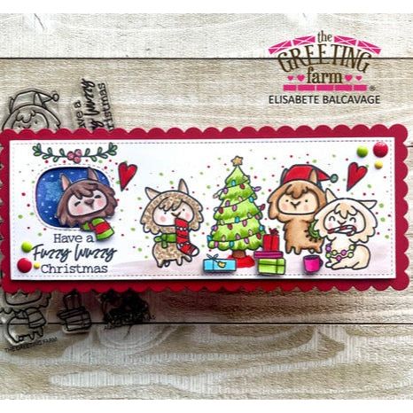 This 4x6 inch clear stamp set is an ideal choice for all your Christmas crafting needs. It includes 12 pieces to help you design unique and festive cards, with four different llama designs, a stack of presents, a single gift, a snowflake, a heart, a sprig or swag, a mug, a holiday tree, and the sentiment "Have a Fuzzy Wuzzy Christmas". Enjoy creative fun this holiday season with The Greeting Farm Alpaca Christmas Clear Stamps!