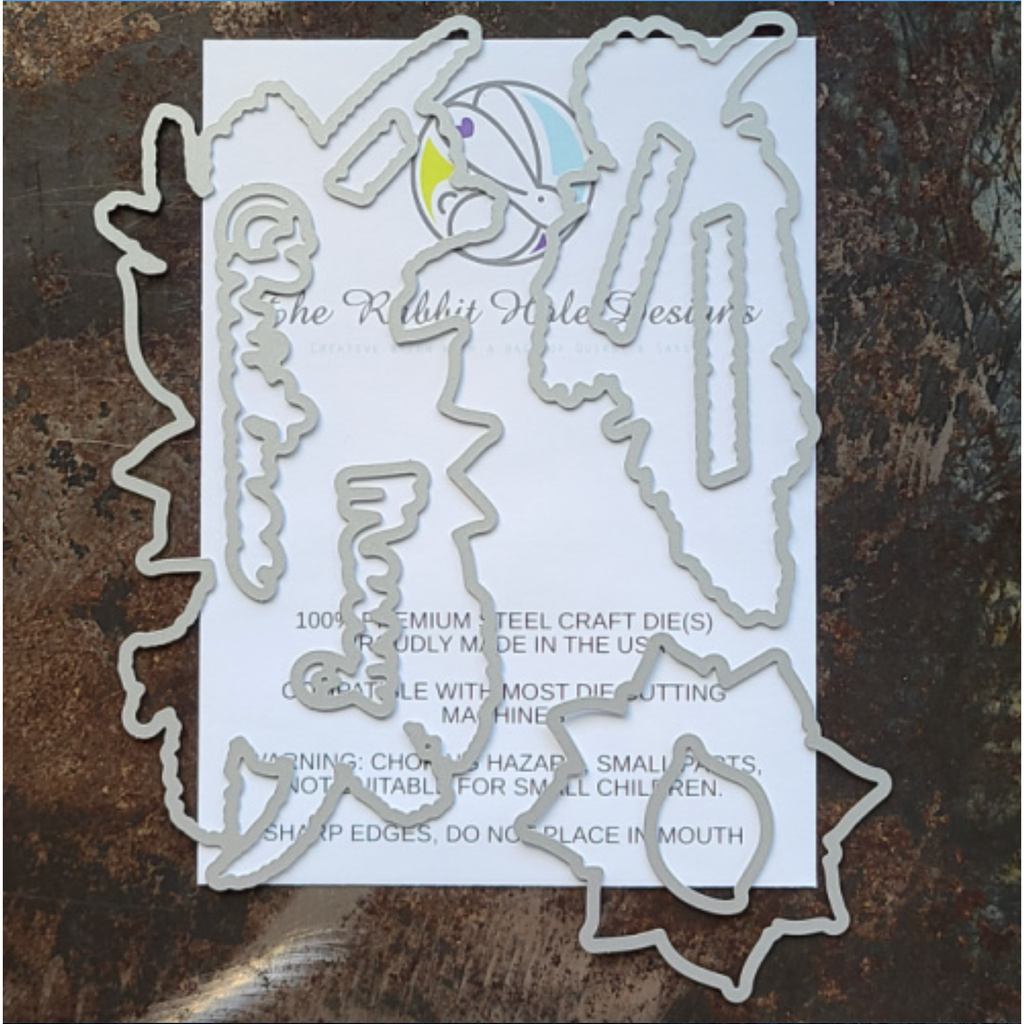 The Rabbit Hole's Poinsettia and Pinecones, showcases three exquisite images, artistically illustrated solely for the collection by Kelly Taylor. Among these images, the largest measures about 6.5 inches in length and 3 inches at its widest point. The intricate detailing is truly captivating, and the die-cut images provided accurately reflect the stamped designs. This set features a sizable scripty Merry and Christmas. It perfectly complements the Poinsettia and Pinecones clear stamp set.