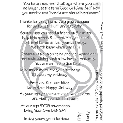 Deeply etched, clear photopolymer stamps for precise placement. This is a 4x6 inch clear stamp set.