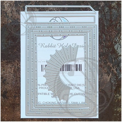 You've Been Framed is a stand alone set of dies that contain 3 dies to create layers, 2 banner dies, and 1 sunburst die. These dies are unique in their design as each layer contains a unique pattern not found on other layering die sets.