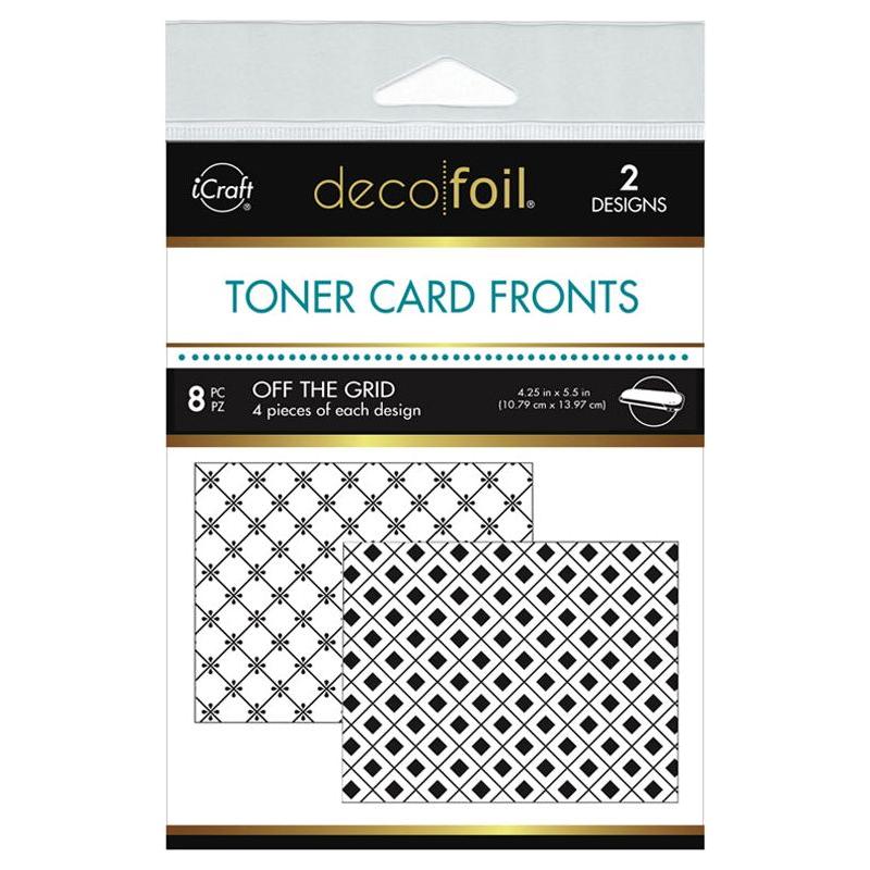 Use the Therm O Web Off the Grid Toner Card Fronts 5666 to add shimmer and shine to create stunning backgrounds, cards, pages, mixed media and more! These unique foilable designs are created exclusively for the Deco Foil Collection. Use with Deco Foil Transfer Sheets for an instant shine, printed on 80 lb. white cardstock, create one-of-a-kind designs using markers, inks, sprays and more, create custom embellishments using your favorite punch, die cut, or electronic cutter, compatible with most hot laminators, and Adhere using our mess-free iCraft Tape Runner XL or 3D Foam Squares to add dimension. Proudly made in the USA.