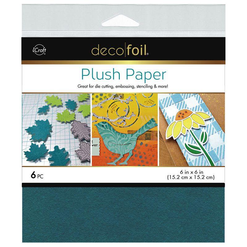 Add a velvety texture and vibrant color to any project without the mess of traditional flock powders! These unique plush papers transfer when using Deco Foil Transfer Gel or Deco Foil Foam Adhesive Sheets and offer unlimited creative options when using your favorite stencils and dies. Plush paper sheets can also be used on their own or with embossing folders. Contains six 6x6 inch sheets in the color designated in the name of this listing.