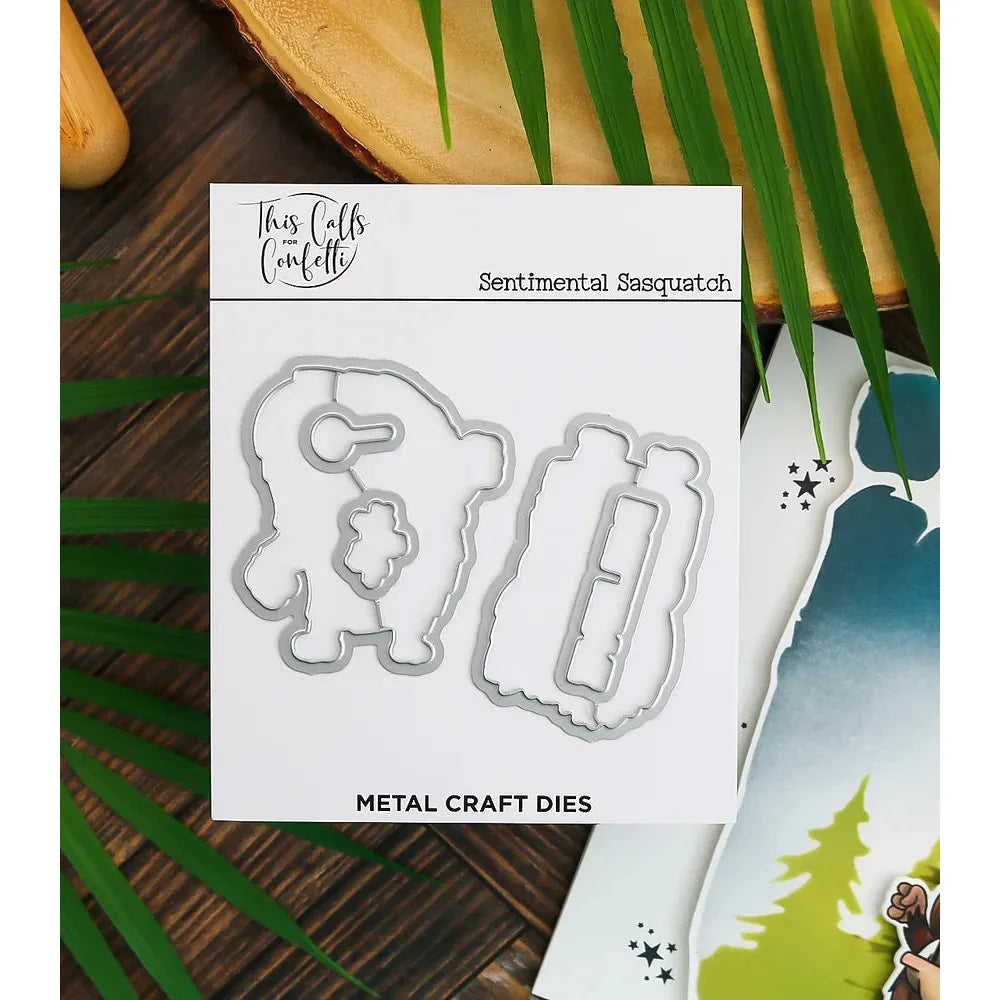 The Sentimental Sasquatch Coordinating Die Set from This Calls For Confetti is perfect for adding a touch of whimsy to crafts. This 5-piece set includes high-quality metal craft outline dies that perfectly coordinate with the Sentimental Sasquatch Stamp Set. The set features dies for two adorable Sasquatch characters, a map pin, stars, and the word "BELIEVE". These versatile dies are compatible with most leading brand die cutting machines on the market, making it easy to create professional-looking crafts with ease. Upgrade your crafting arsenal with the Sentimental Sasquatch Coordinating Die Set and bring projects to life. Sold separately.