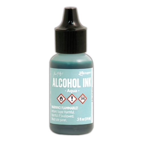 Effortlessly express your creativity with the luxurious Tim Holtz® Alcohol Ink Aqua. These premium, quick-drying inks are specially crafted to produce stunning color blends on impermeable surfaces. Perfect for applying on Alcohol Ink Dura Lar, Yupo®, Cardstock, Foil, Glossy Paper, and more. Unleash your artistic potential by experimenting with metal, glass, and glazed tiles. Each bottle contains 0.5 fl oz (14ml) of high-quality ink.