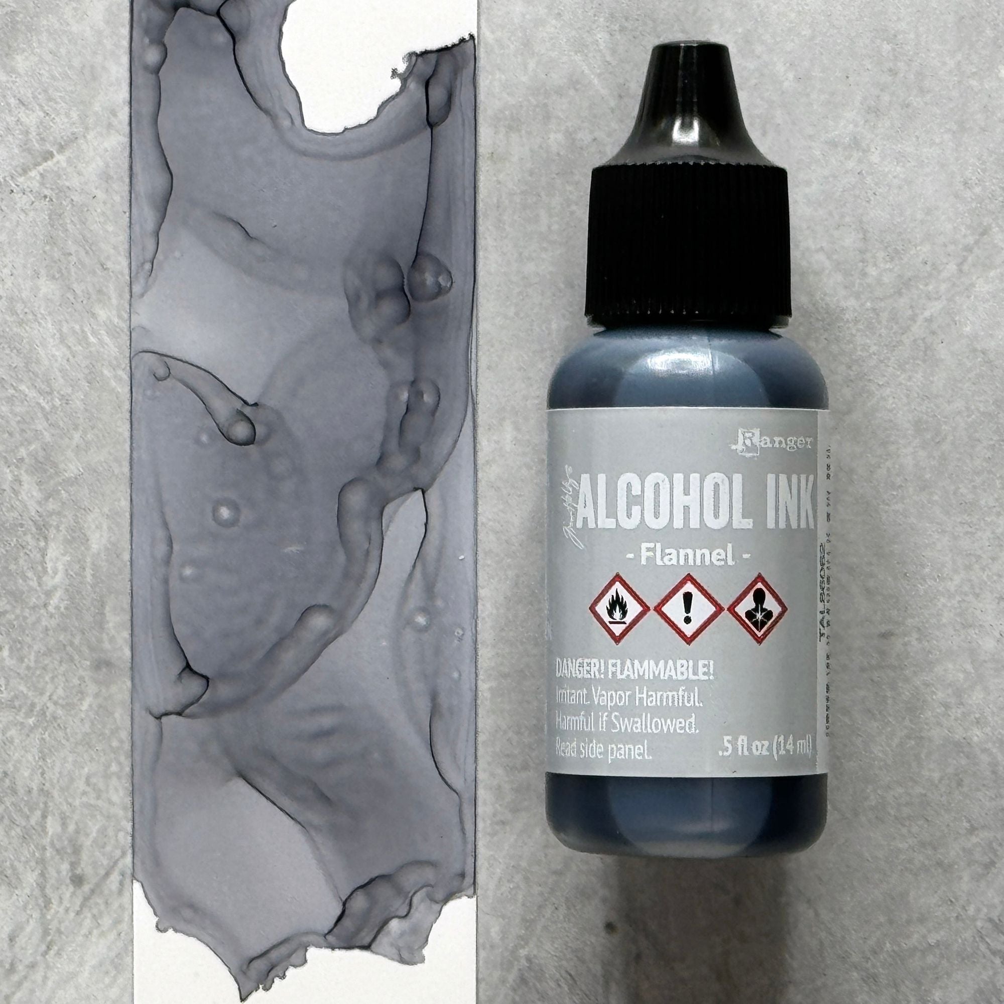 Effortlessly express your creativity with the luxurious Tim Holtz® Alcohol Ink Flannel. These premium, quick-drying inks are specially crafted to produce stunning color blends on impermeable surfaces. Perfect for applying on Alcohol Ink Dura Lar, Yupo®, Cardstock, Foil, Glossy Paper, and more. Unleash your artistic potential by experimenting with metal, glass, and glazed tiles. Each bottle contains 0.5 fl oz (14ml) of high-quality ink.