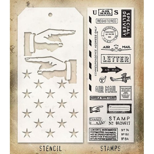 Tim Holtz Mixed Media Set includes clear stamps and a custom layering stencil designed to add texture and imagery to your creativity. Use with your favorite inks, paints, sprays, and pastes for endless mixed media possibilities.