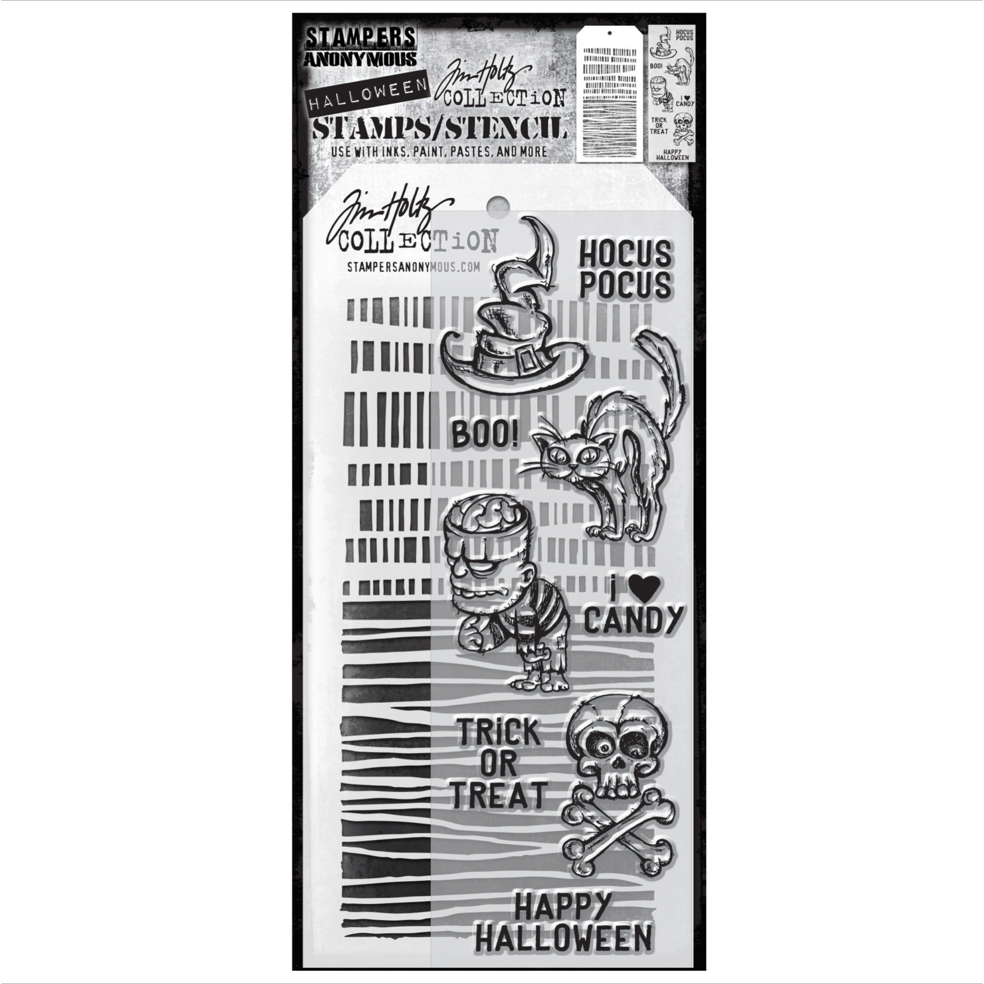 Tim Holtz Clear Stamps mixed media set includes clear stamps & a custom layering stencil designed to add texture & imagery to your creativity. Use with your favorite inks, paints, sprays, and pastes.