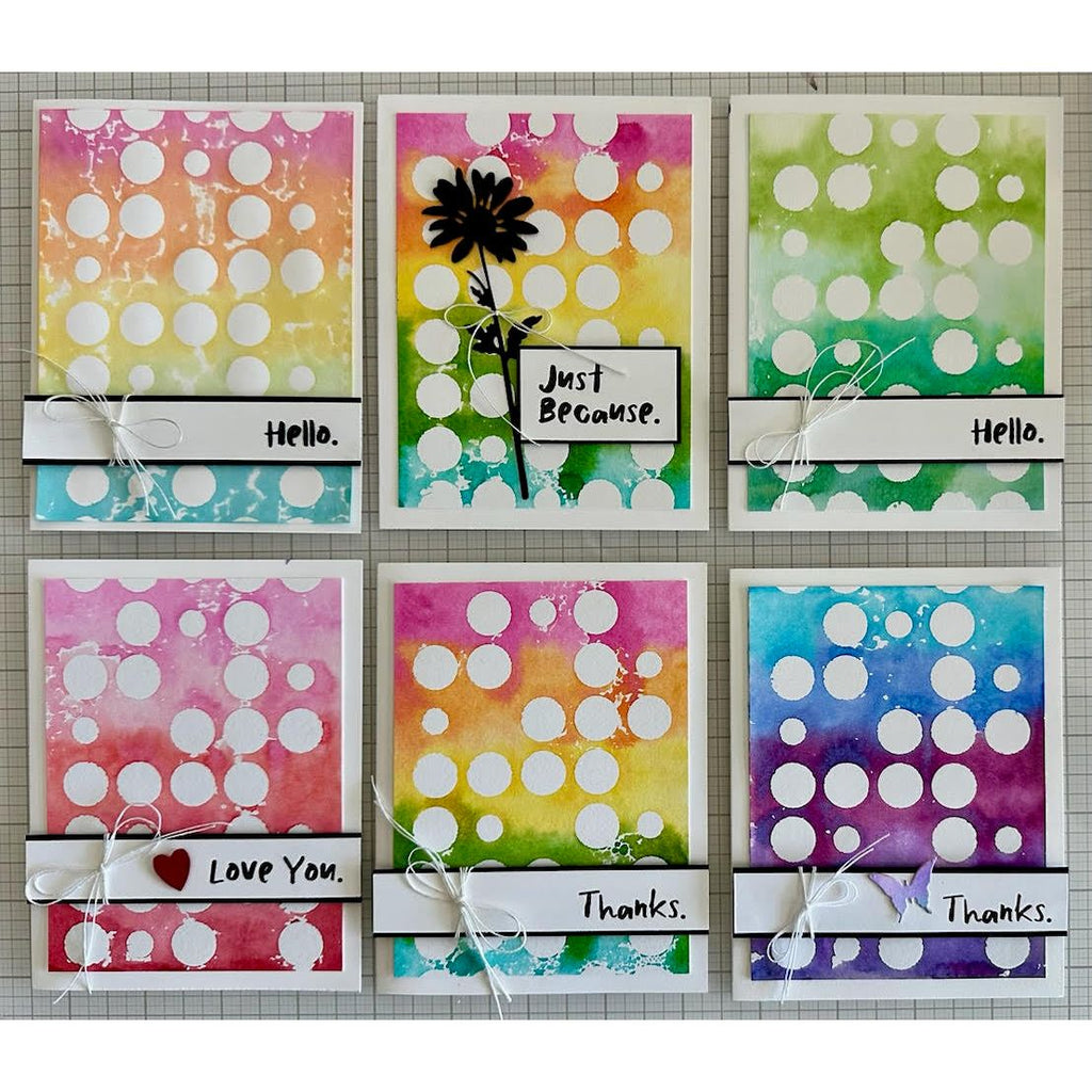 This stamp set features images curated by Tim Holtz from the Spring Shadows Cling Stamp cms393, it also includes smaller versions of the Tim Holtz Layering Stencil Gingham ths134 and Tim Holtz Layering Stencil Dotted Line ths155, all sold separately in full-size, but the smaller versions are included together in this set.