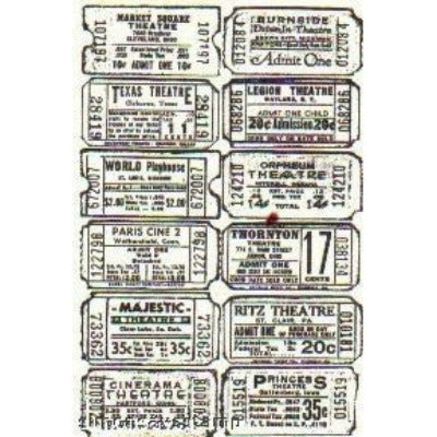 The stamp features a detailed vintage collage of ticket stubs! It measures approximately 2.5 x 3.5 inches.