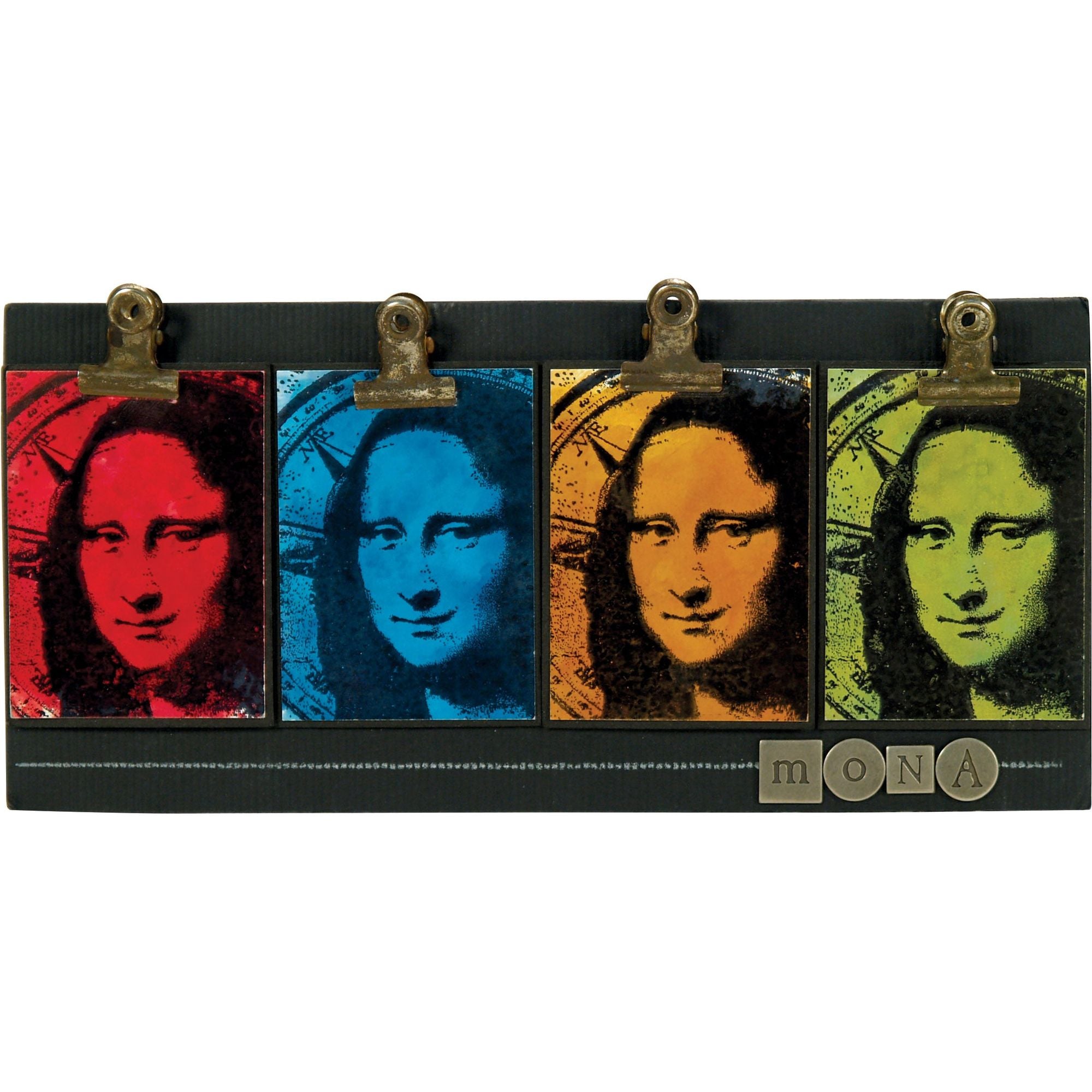 The stamp features a detailed collage of the Mona Lisa, the Eiffel Tower, and French script on top of Vintage Parisian post stamps. It measures approximately 2.5 x 3.5 inches.