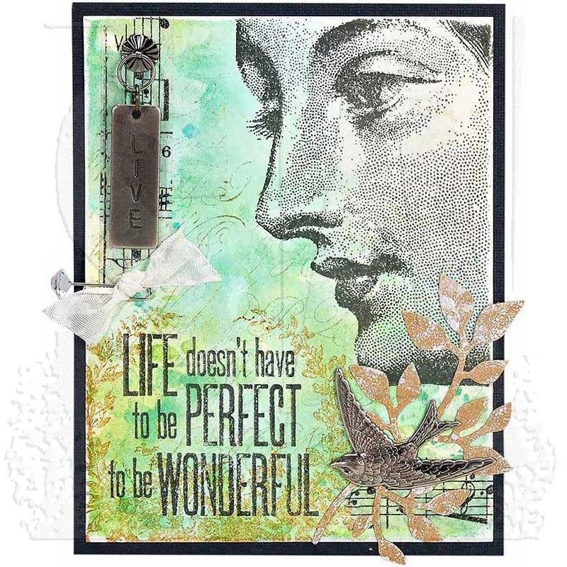 The stamp sheet measures approximately 7 by 8.5 inches. Check out our store for coordinating items like tags, ink, art parts, die cutting plates, even grungepaper!