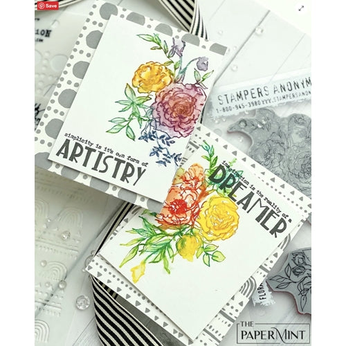 Introducing the Tim Holtz Cling Rubber Stamps Floral Outlines, meticulously curated by the renowned Tim Holtz and proudly crafted in the USA. These red rubber stamps showcase deeply etched designs, capturing the intricate beauty of abstract floral motifs. Mounted on a 0.125-inch gray static cling cushion, these stamps provide easy repositioning and convenient storage. They seamlessly cling mount to any clear acrylic block. This stamp set features three elegantly detailed floral images, with the stamp sheet measuring approximately 7 x 8.5 inches and the Flower Trio stamp measuring 3.5 x 5.25 inches. Explore the endless creative possibilities and add a touch of timeless elegance to your projects with the Tim Holtz Cling Rubber Stamps Floral Outlines!