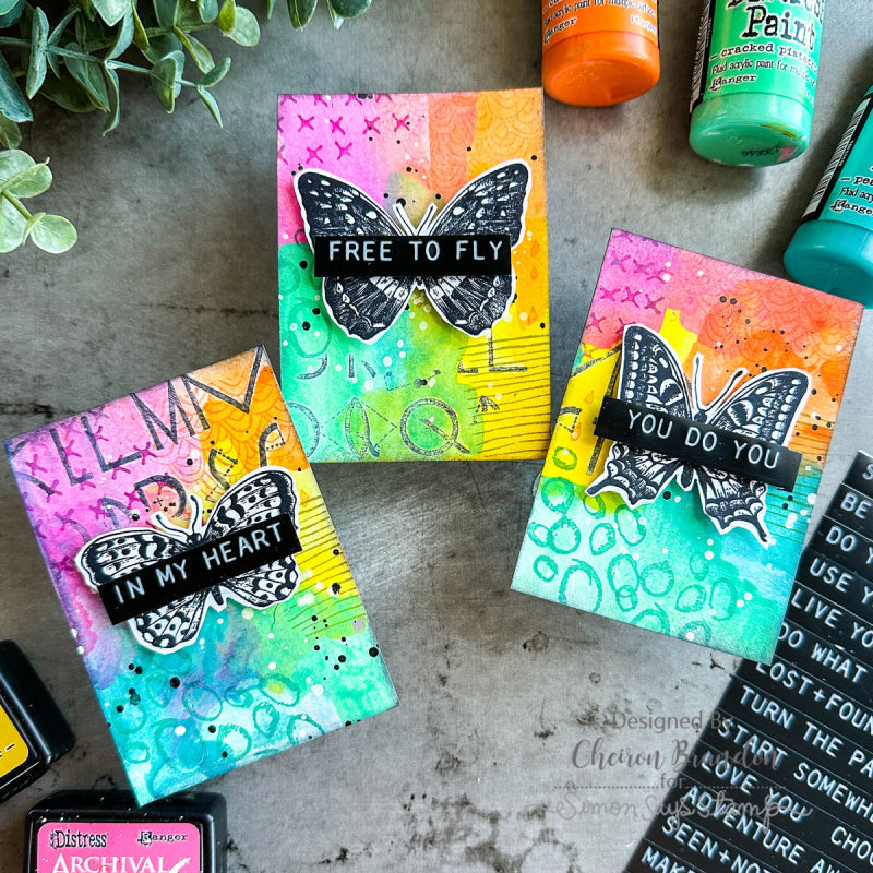 Tim Holtz Cling Rubber Stamps Flutter set includes ten deeply etched red rubber cling mount stamps that adhere to any clear acrylic block, sold separately. With Images curated by Tim Holtz, this set features 10 different detailed butterflies. The full stamp sheet measures 7.0 x 8.5 inches.