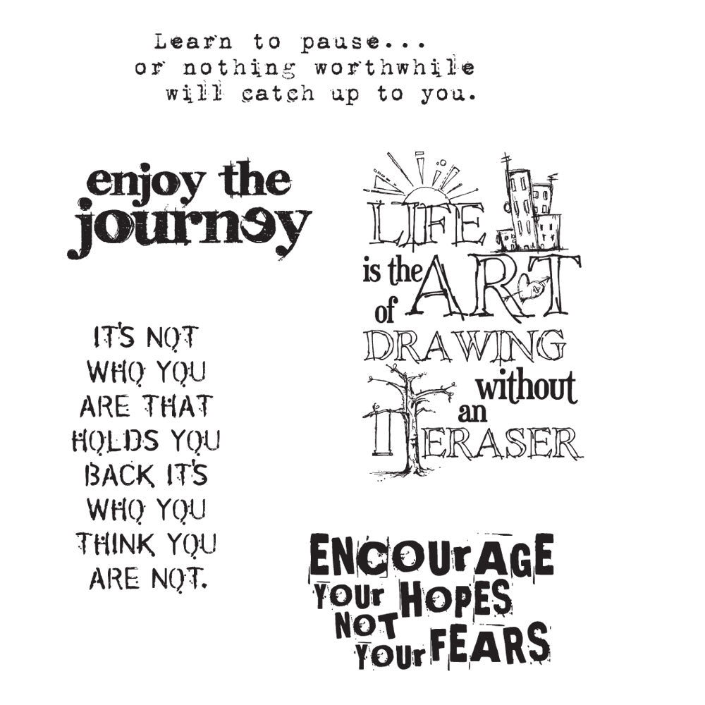 Sentiment reads: Learn to pause....or nothing worthwhile will catch up to you. enjoy the journey, Life is the Art of Drawing without an Eraser, Encourage your hopes not your fears It's not who you are that holds you back, it's who you think you are not