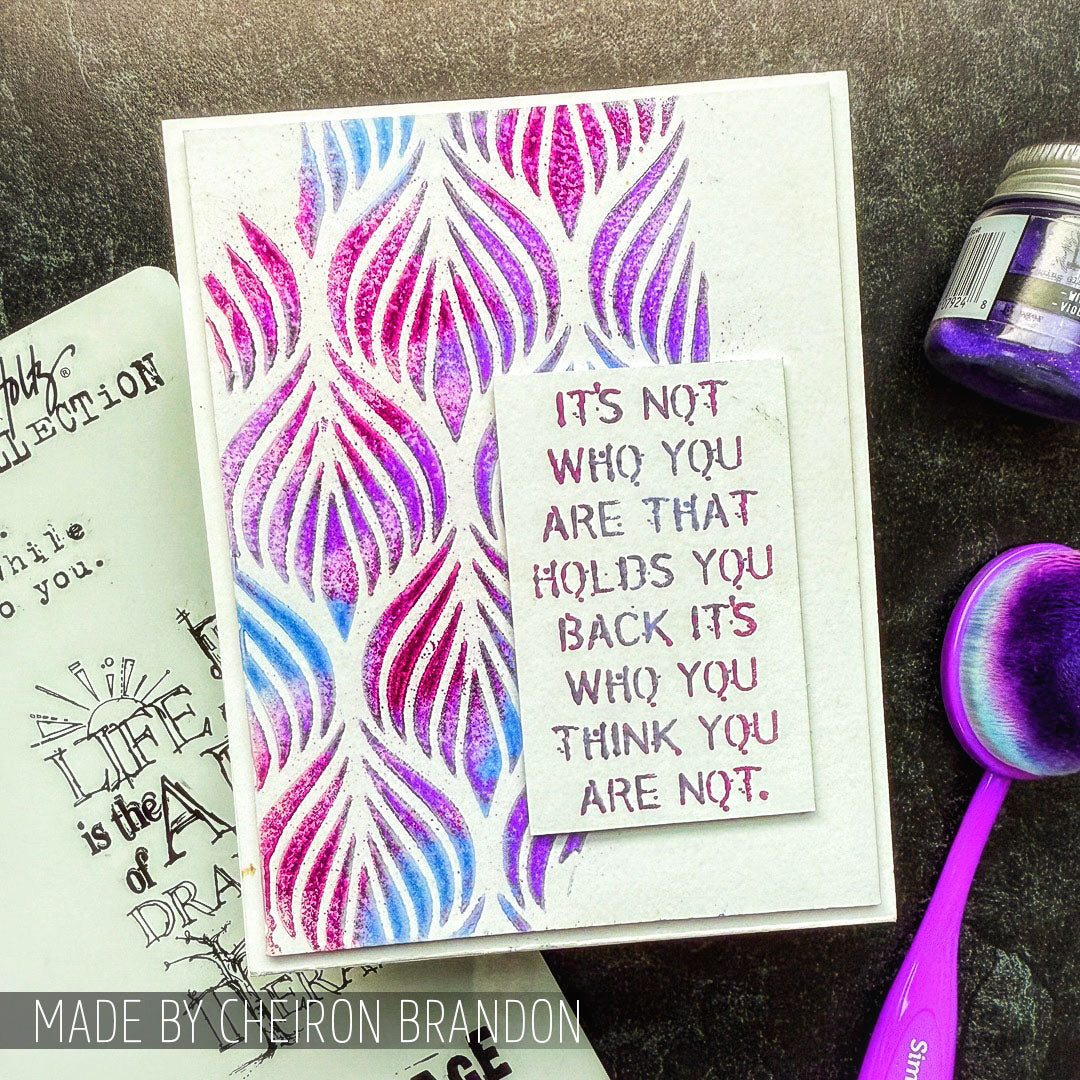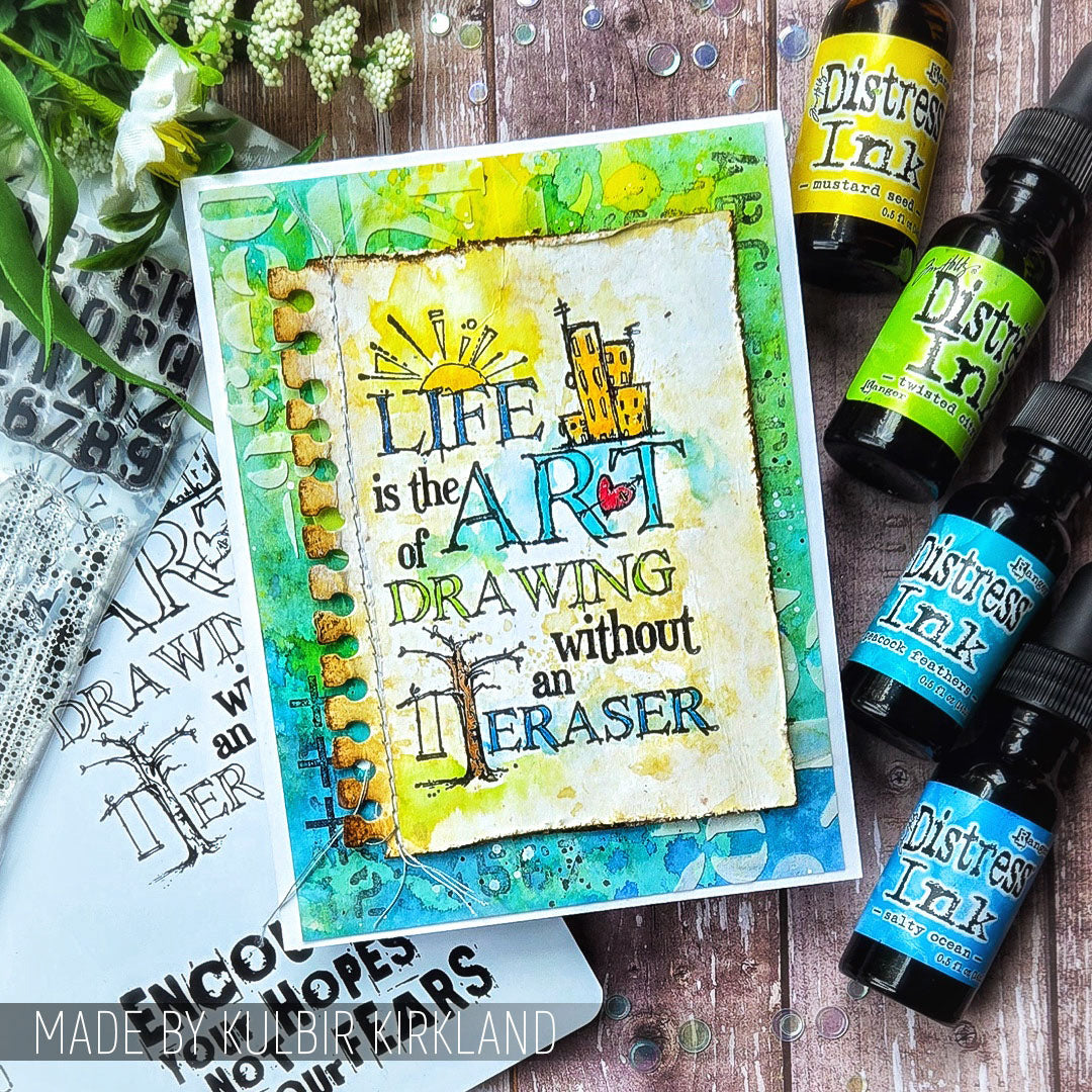 This stamp set has thick foam with deeply etched rubber. There are 5 different rubber stamps that can cling mount to any clear acrylic block (clear blocks are not included in this sale, but are available through the store!). What a space saver! They are part of a line of stamps curated by Tim Holtz.