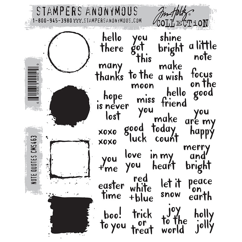 The Tim Holtz Cling Rubber Stamps Note Quotes set is an excellent addition to any artist's collection. These stamps are neatly trimmed, deeply etched, and made with high-quality rubber in the USA by Stampers Anonymous. The full set measures approximately 7 x 8.5 inches and includes a variety of useful everyday notes or quotes. The set also includes both square and circle background options that can be used to highlight and enhance the wording. These stamps are perfect for mixed media projects, scrapbooking, card-making, and other artistic endeavors. The Tim Holtz Cling Rubber Stamps Notes Quotes set is a must-have for any artist looking to add inspirational and meaningful designs to their artwork.