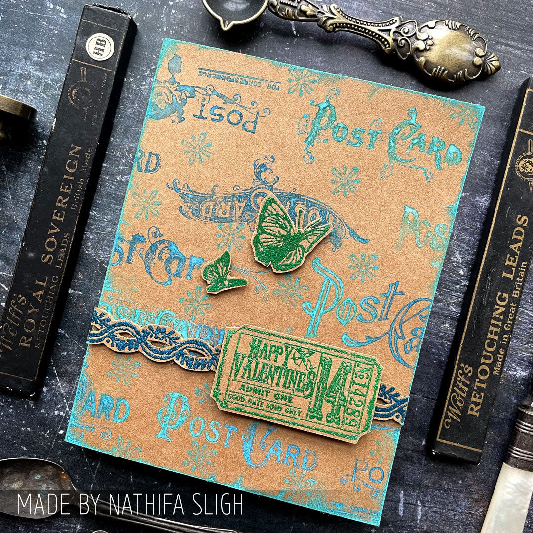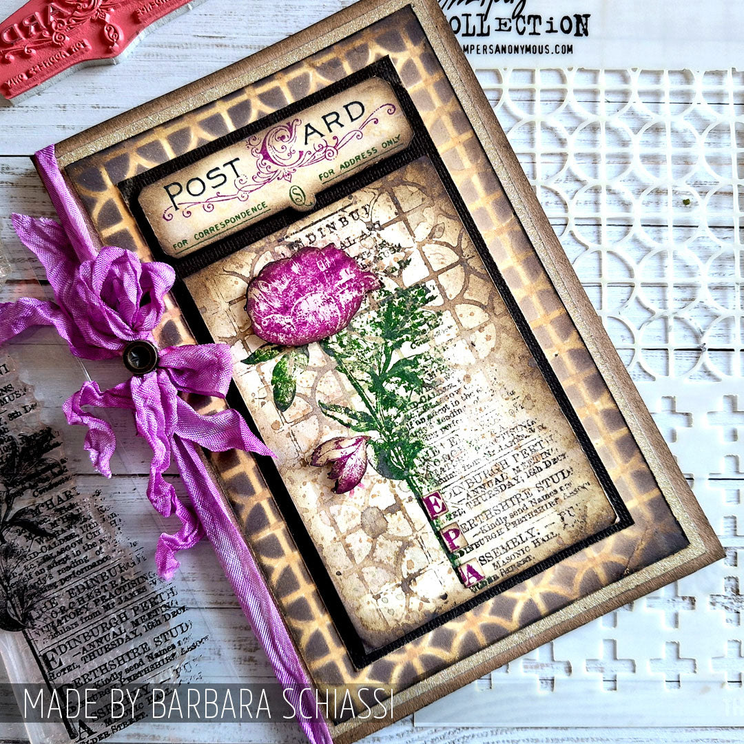 Tim Holtz Cling Rubber Stamps Postcards is a set of 10 deeply etched red rubber cling mount stamps that adhere to any clear acrylic block, sold separately. Stamps are mounted on 0.125 inch gray static cling cushion for fine detail. With Images curated by Tim Holtz. This set features the sentiment post card in several vintage fonts. Proudly made in the USA by Stampers Anonymous, these high-quality rubber stamps provide crisp, detailed impressions, perfect for mixed media and papercrafting. Stamps come on a 3-hole punched sheet for easy storage. The full stamp sheet measures 7.0 x 8.5 inches.