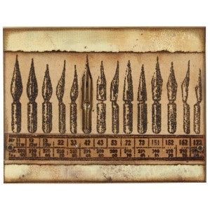 This stamp set has thick foam with deeply etched rubber. There are 3 different rubber stamps that can cling mount to any clear acrylic block (clear blocks are not included in this sale, but are available through our store!). What a space saver! They are part of a line of stamps curated by Tim Holtz.The stamp set measures approximately 7 x 8.5 inches.