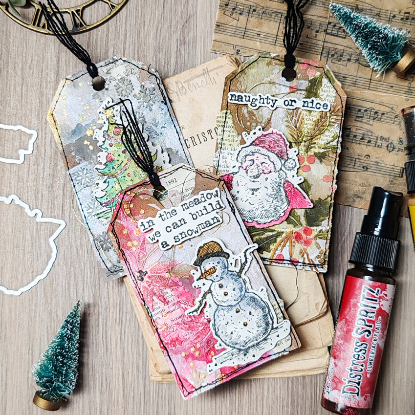 Tim Holtz Cling Rubber Stamps Tattered Christmas is a 7 x 8.5 inch set thoughtfully curated by Tim Holtz, featuring 19 deeply etched red rubber cling stamps. The collection includes 12 holiday-themed images and 7 coordinating sentiments, perfect for creating a rustic, vintage Christmas look. The stamps are mounted on a 0.125 inch gray static cling cushion for use with Tim Holtz Acrylic Grid Blocks Set 521736 or any standard acrylic blocks, sold separately. Made in the USA by Stampers Anonymous.