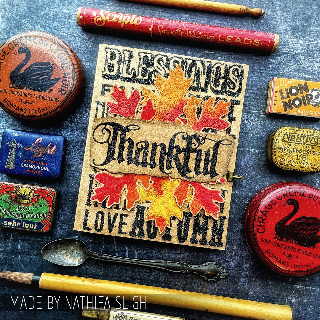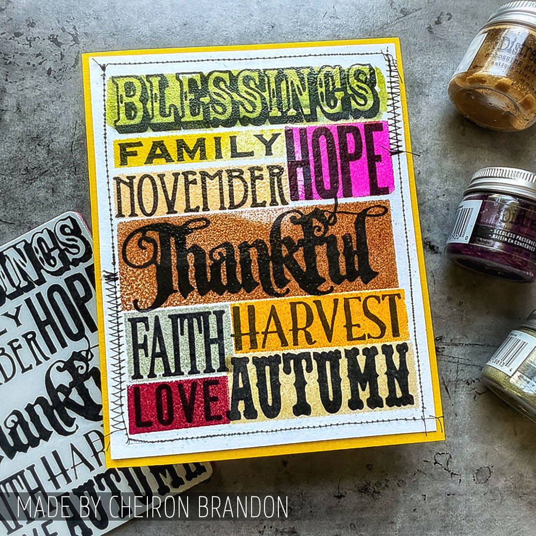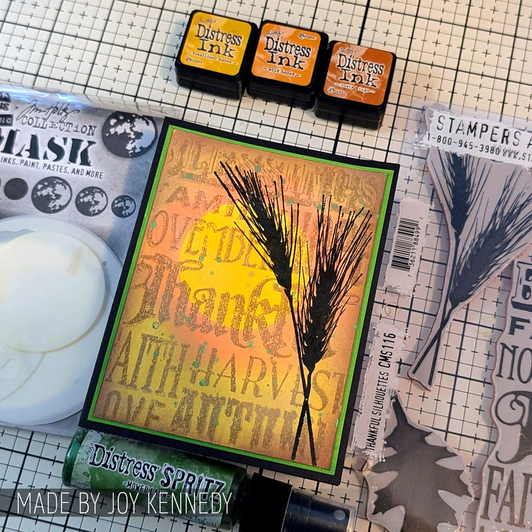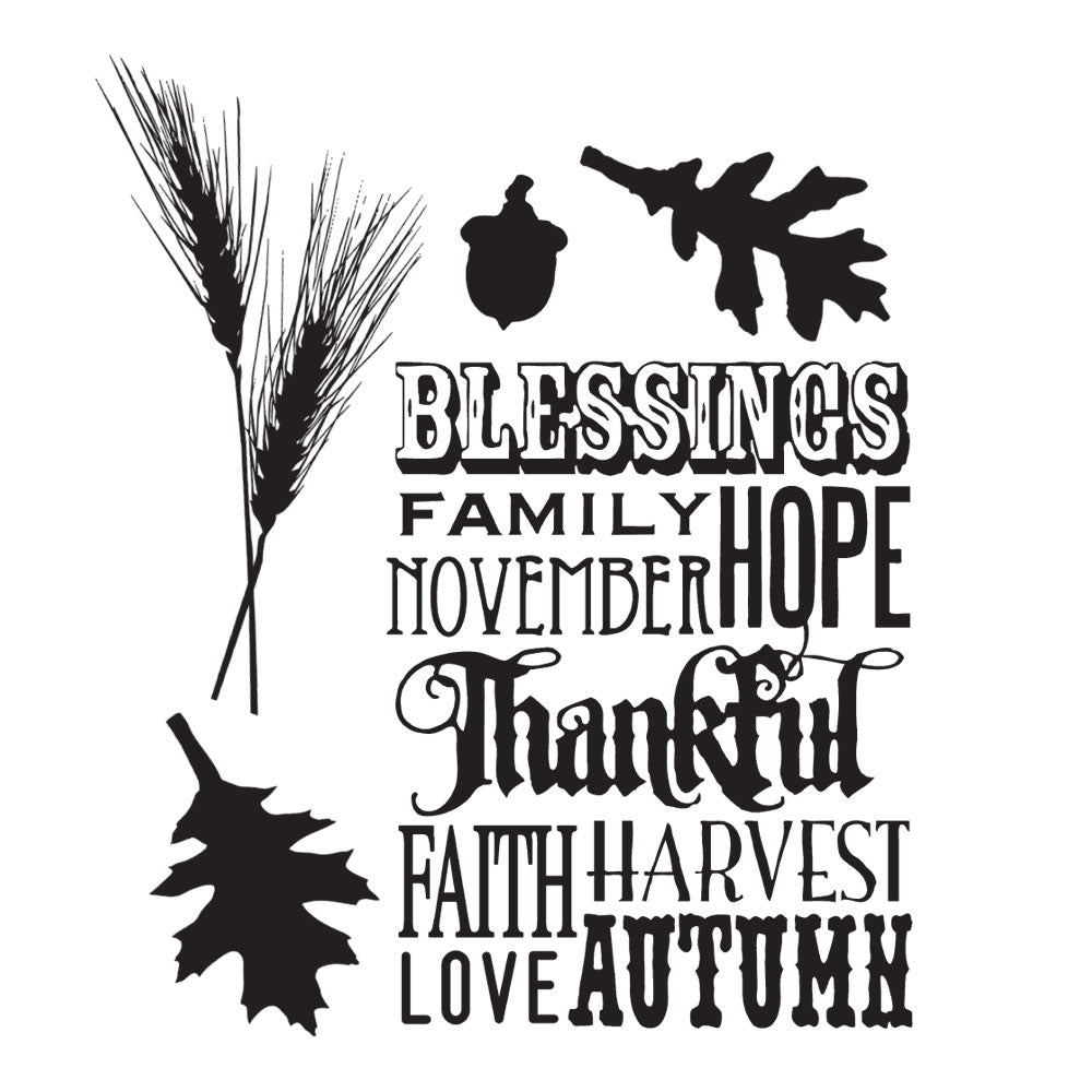 Tim Holtz Cling Rubber Stamps Thankful Silhouettes is a set of deeply etched red rubber cling mount stamps that adhere to any clear acrylic block, sold separately. Stamps are mounted on 0.125 inch gray static cling cushion for fine detail. With Images curated by Tim Holtz, this set features silhouette leaves, wheat, and an acorn along with a mixed font sentiment. Proudly made in the USA by Stampers Anonymous, these high-quality rubber stamps provide crisp, detailed impressions, perfect for mixed media and papercrafting. Stamps come on a 3-hole punched sheet for easy storage. The full stamp sheet measures 7.0 x 8.5 inches.