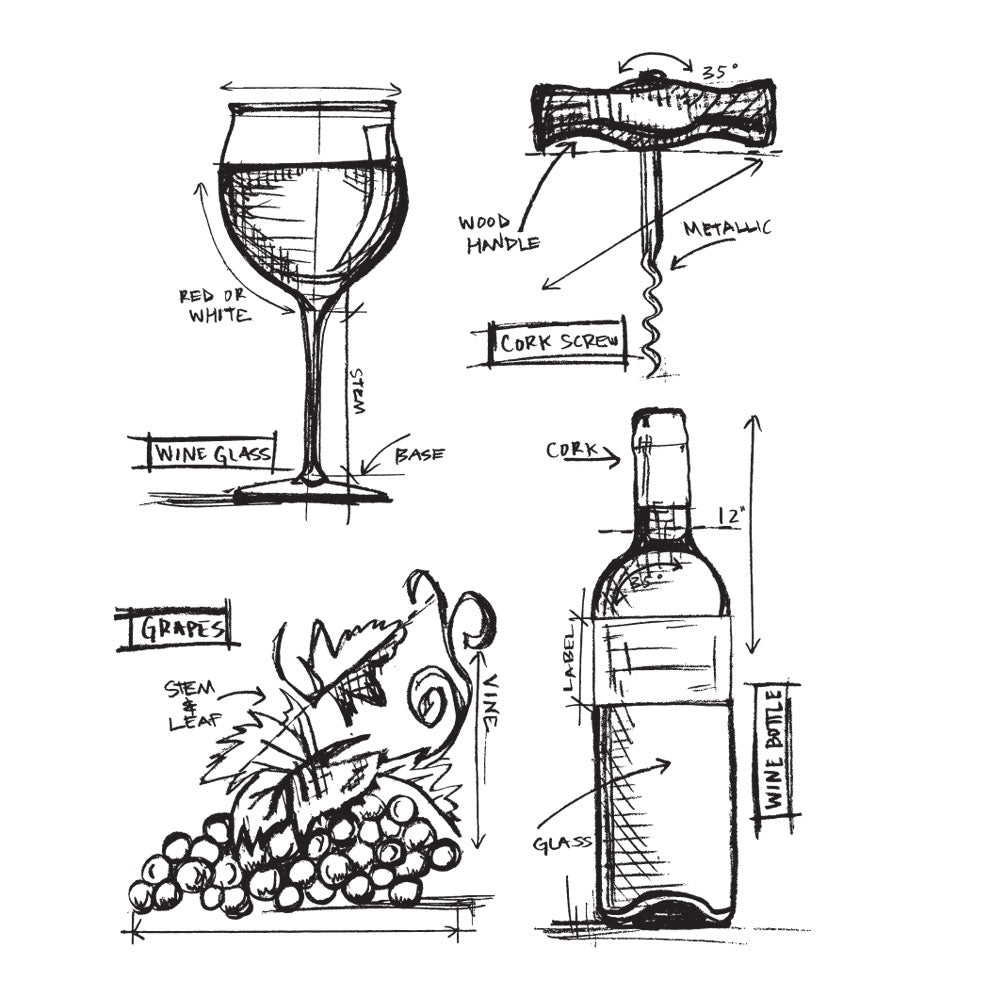 Tim Holtz Cling Rubber Stamps WINE BLUEPRINTS CMS333