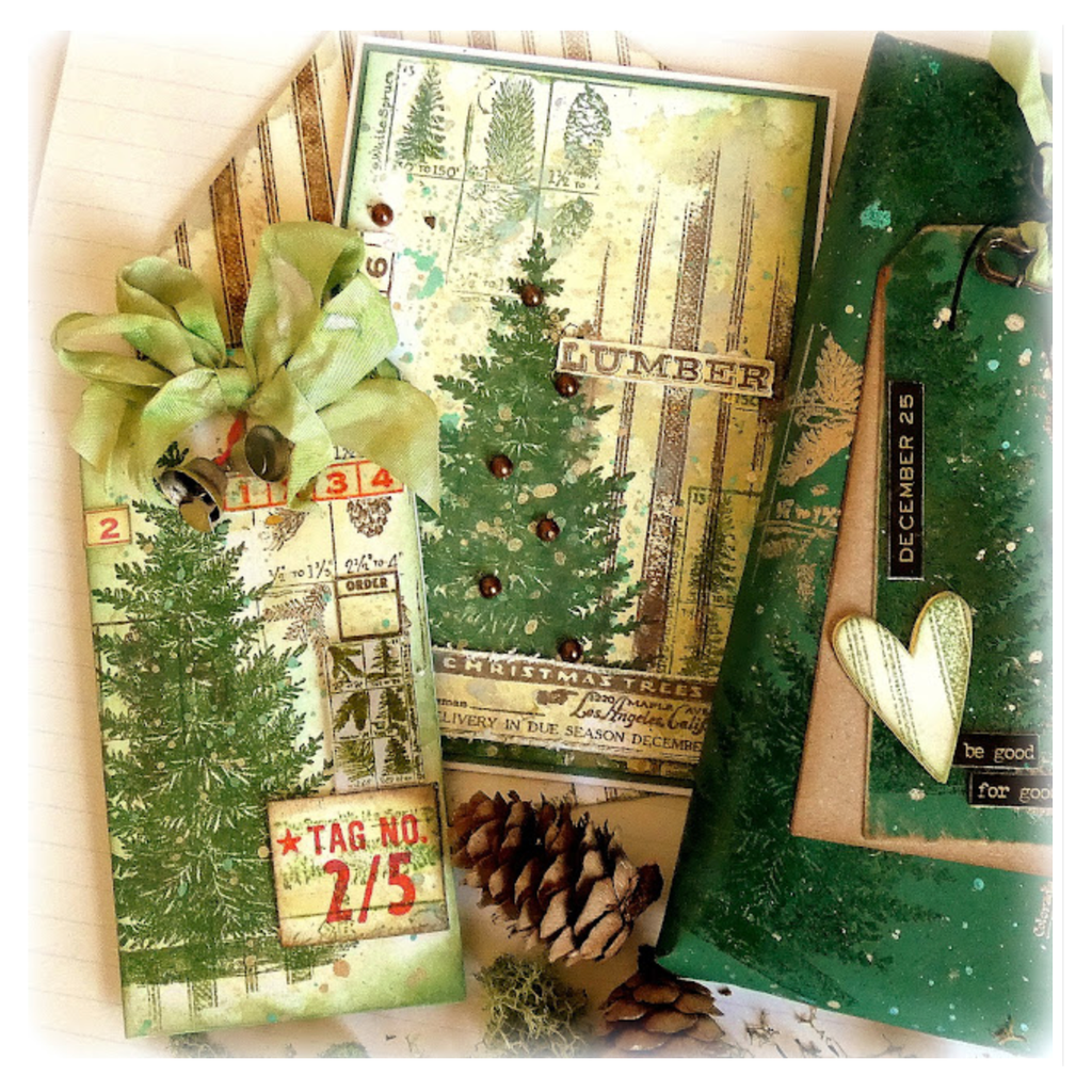 Measuring approximately 7 x 8.5 inches, the stamp sheet embodies the enchanting essence of winter. It showcases a meticulously detailed pine tree alongside a legend displaying various types of pine trees and their distinctive features. Additionally, you'll find five vintage signs bearing the phrases North Lumber and Hardware Co, Contents Merchandise May be opened for inspection if necessary, tag no 2/5, Christmas Trees Los Angeles Calif Delivery in due season December, and a row of numbers. The sentiment All kinds of Lumber graces this captivating stamp sheet, allowing you to infuse your projects with a touch of rustic charm and winter nostalgia.