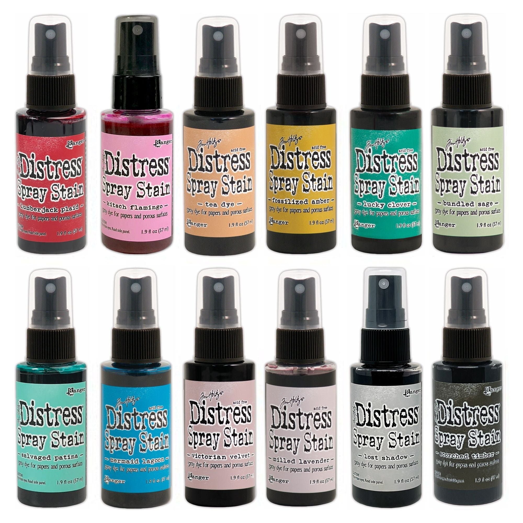 The same beloved formula of Distress Stains is now available in an easy-to-use spray bottle. This quality mist sprayer offers quick and even coverage on porous surfaces - perfect for stencils, layering colors, and blending with water. Each 1.9 fl. oz bottle features a fine mist sprayer and the water-based dye ink is suitable for use on paper and other porous surfaces.