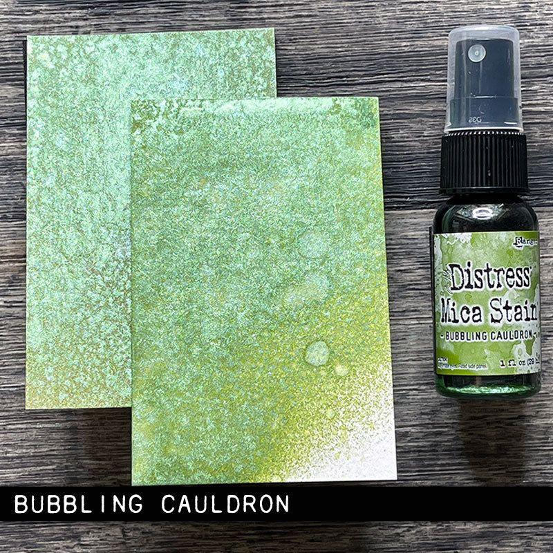Distress Mica Stains from Tim Holtz provide a brilliant, shimmering finish to papercrafts and mixed media projects. Easily adhered to paper, canvas, wood, fabric and other porous surfaces, these stains create eye-catching effects and can be combined with Distress Ink, Oxide, Spray Stain, and Oxide Spray. Contains 1 fl. oz. of Bubbling Cauldron Mica Stain Spray.