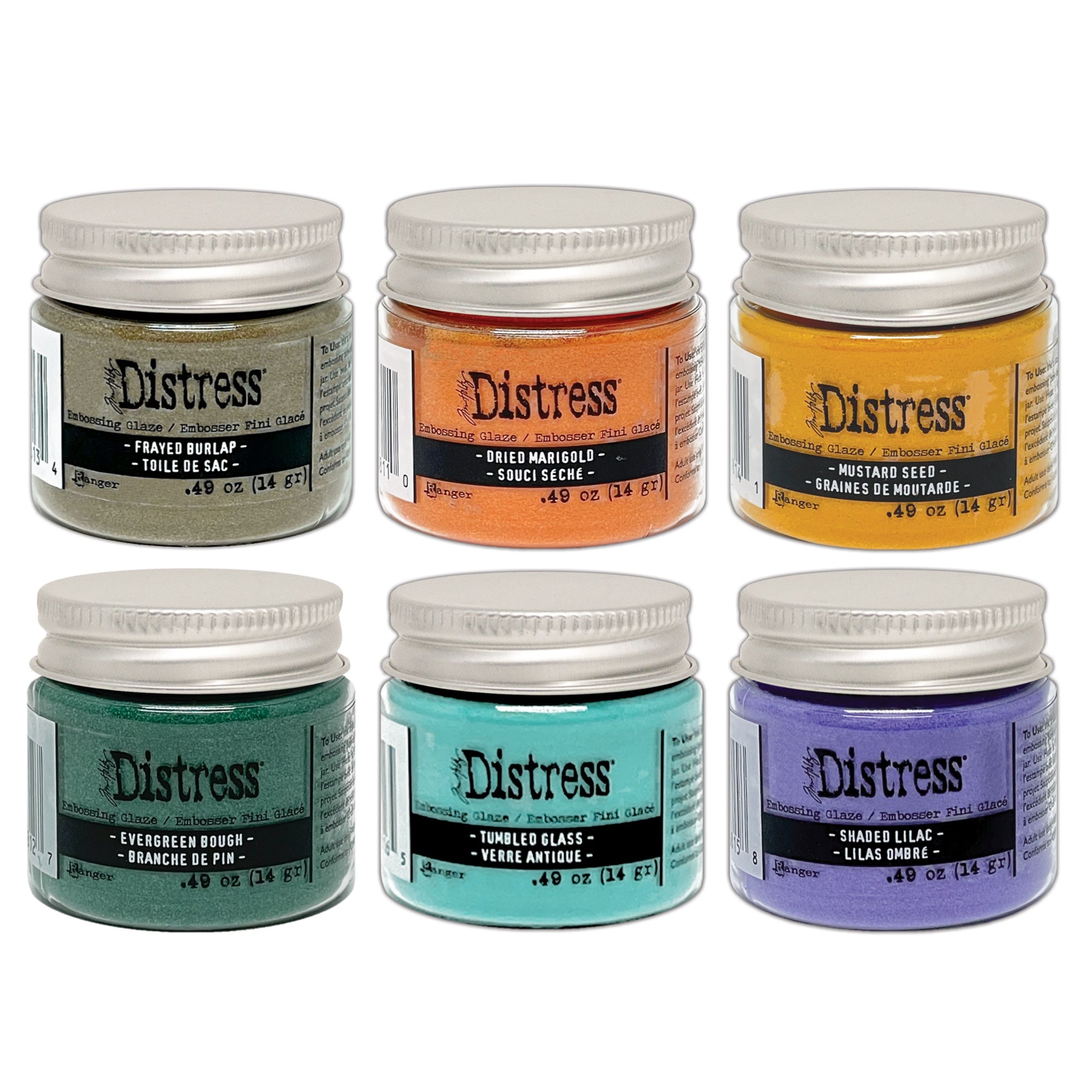Enhance your projects with the addition of Tim Holtz Distress® Embossing Glazes! These transparent powders are perfect for layering on various surfaces. Combine with the Distress Embossing Ink Pad, Embossing Dabber, and Embossing Pens. Match with the complete line of Tim Holtz Distress® shades. Sold in 1 oz jars.