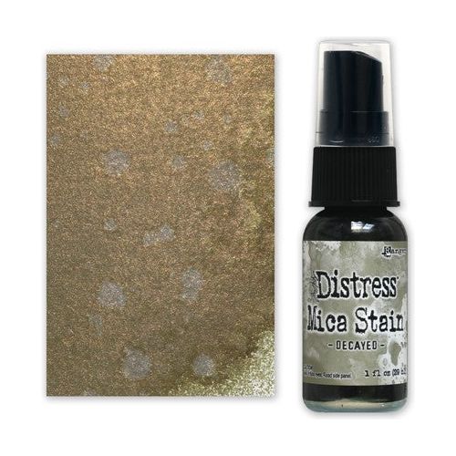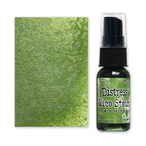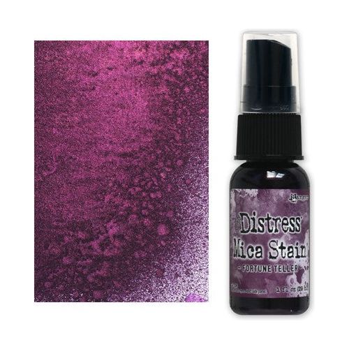 Tim Holtz Distress Mica Stains add colorful, pearlescent shimmer to paper crafts or mixed media projects.
