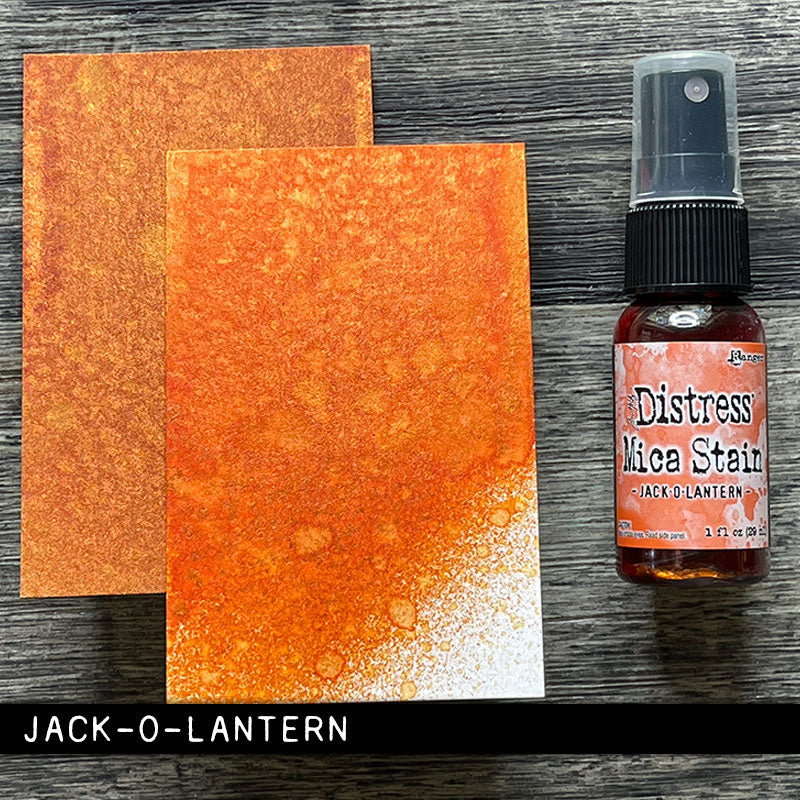 Distress Mica Stains from Tim Holtz provide a brilliant, shimmering finish to papercrafts and mixed media projects. Easily adhered to paper, canvas, wood, fabric and other porous surfaces, these stains create eye-catching effects and can be combined with Distress Ink, Oxide, Spray Stain, and Oxide Spray. Contains 1 fl. oz. of Jack-O-Lantern Mica Stain Spray.