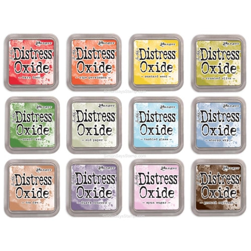 Distress Oxide Ink Pads feature a specially formulated dye-and-pigment ink blend that reacts with water to create a unique oxidized effect. Perfect for use with stamps, stencils, and direct to surface applications. Ink blending tools and foam are recommended for optimum result. The complete range of oxide colors are available in 3 x 3 inch ink pads and 0.5 oz re-inkers.