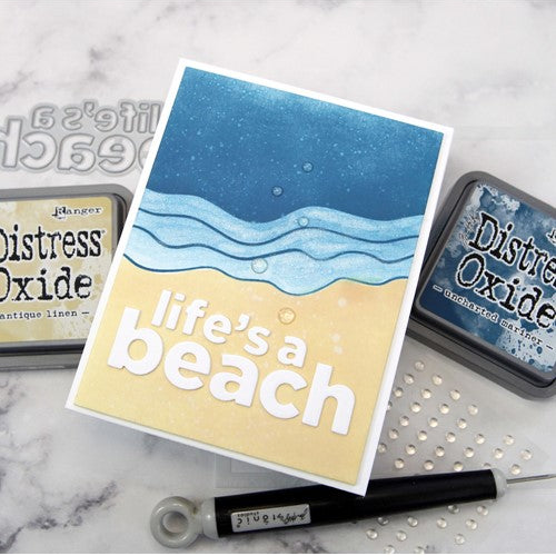 New for June 2022! Distress Oxide Reinkers are a water-reactive dye and pigment ink fusion that creates an oxidized effect when sprayed with water. Use with stamps, stencils, and direct to surface. All oxide colors are available in 3 x 3 inch ink pads and coordinating .5 oz re-inkers.