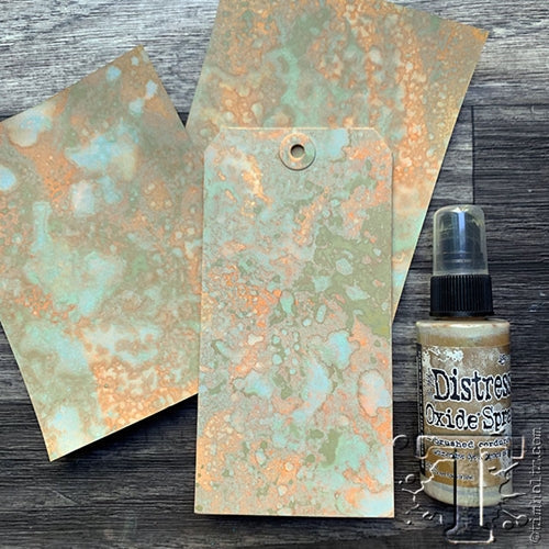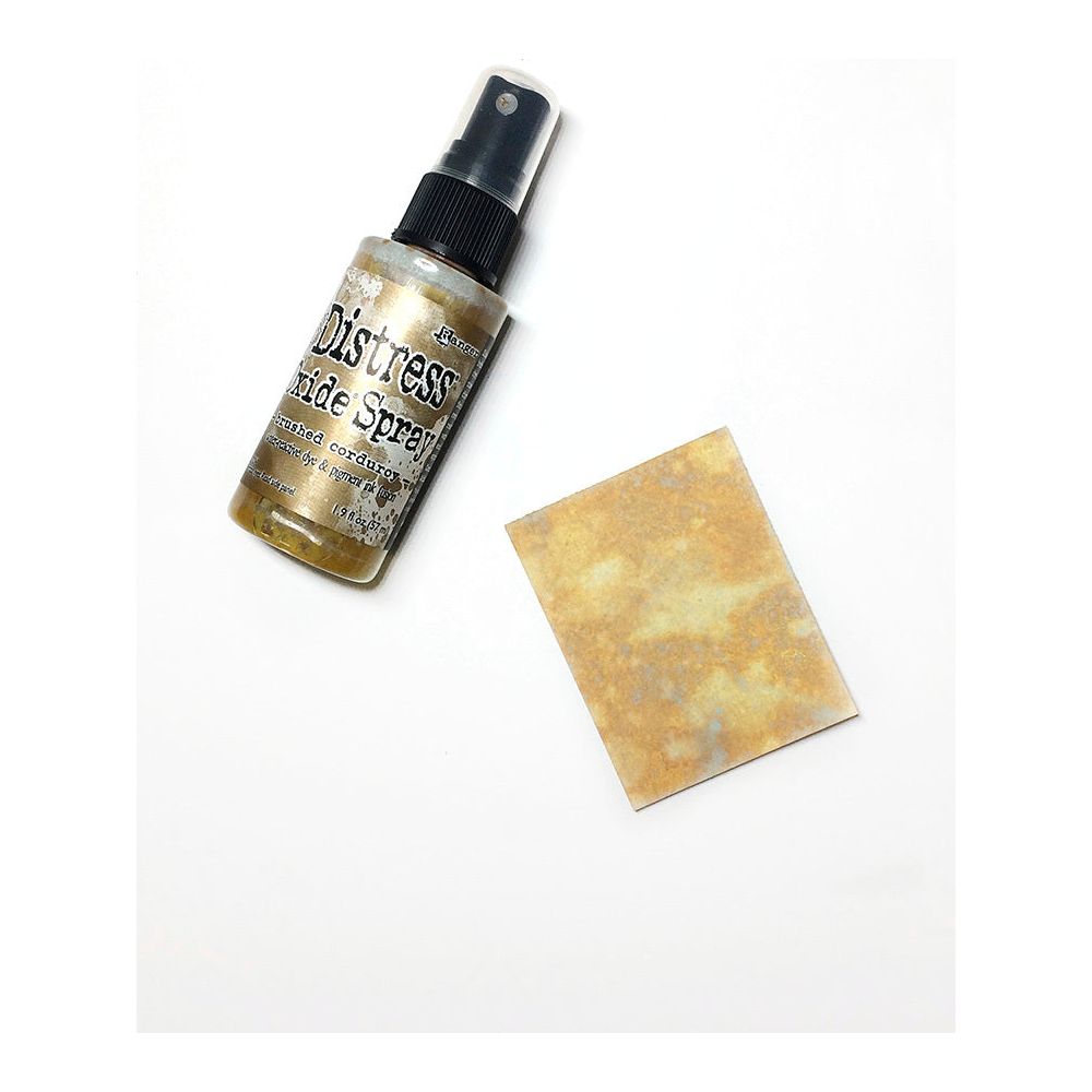 Tim Holtz Distress Oxide Spray is a dye and pigment ink fusion that creates oxidized effects when sprayed with water. Use for quick and easy ink coverage on porous surfaces. Spray through stencils, layer colors, spritz with water and watch the color mix and blend.