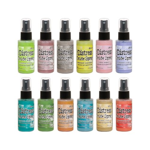 Tim Holtz Distress Oxide Spray is a dye and pigment ink fusion that creates oxidized effects when sprayed with water. Use for quick and easy ink coverage on porous surfaces. Spray through stencils, layer colors, spritz with water and watch the color mix and blend.
